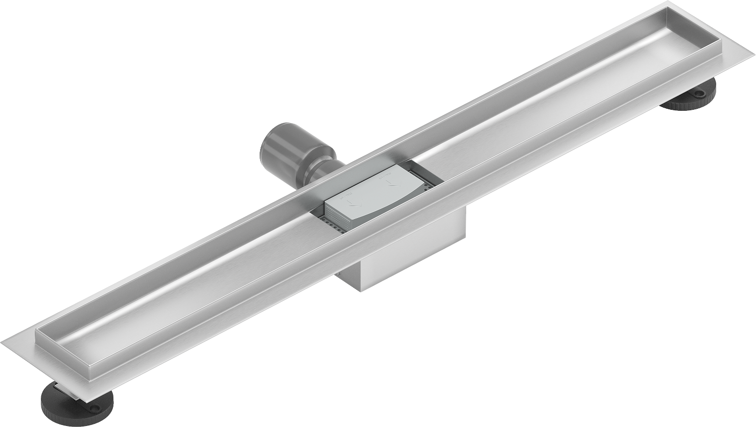 Odpływ jest wyposażony w regulowane nóżki, które umożliwiają dopasowanie odpowiedniej wysokości odpływu oraz wypoziomowanie na nierównej powierzchni. W ten sposób odpływ jest jeszcze lepiej dopasowany do warunków danej łazienki.