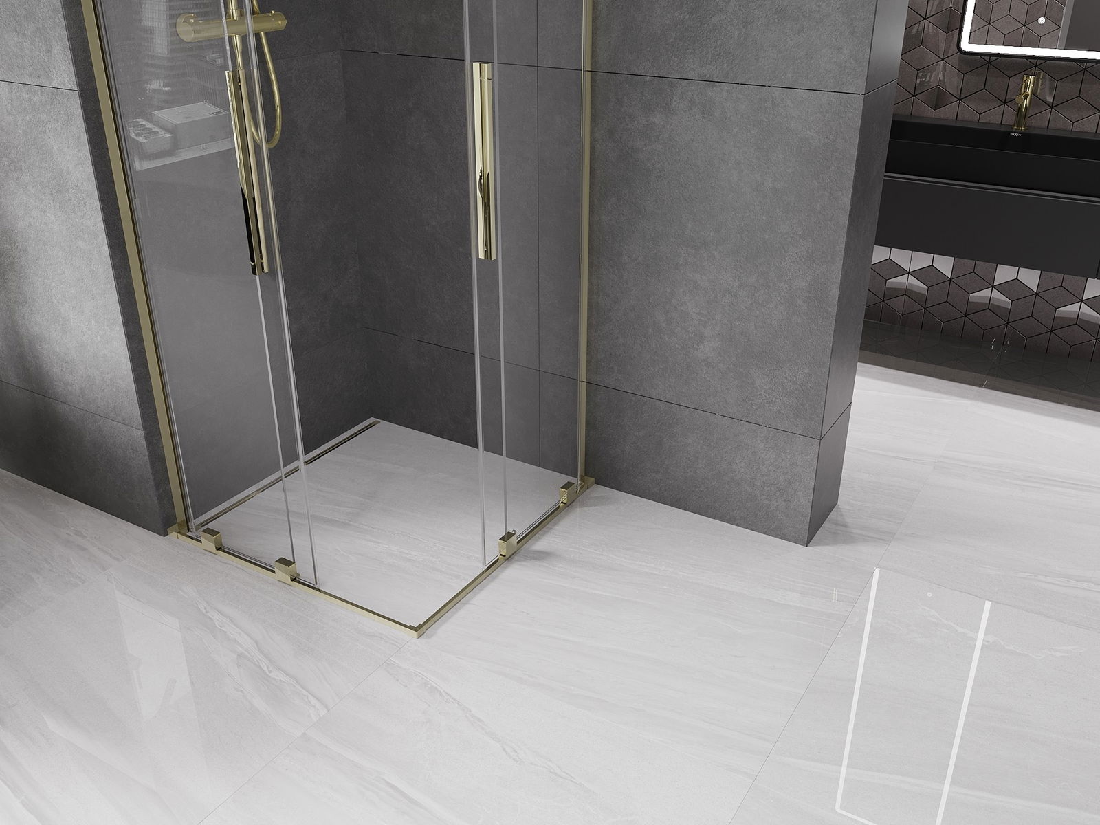 Mexen Velar L Duo kabina prysznicowa rozsuwana 80 x 80 cm, transparent, złota - 871-080-080-02-03-50