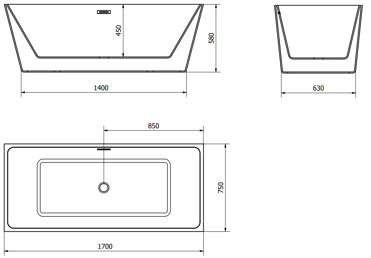 Mexen Lita wanna wolnostojąca 170 x 75 cm, biała/czarna, przelew gun gray szczotkowany - 52121707575-66