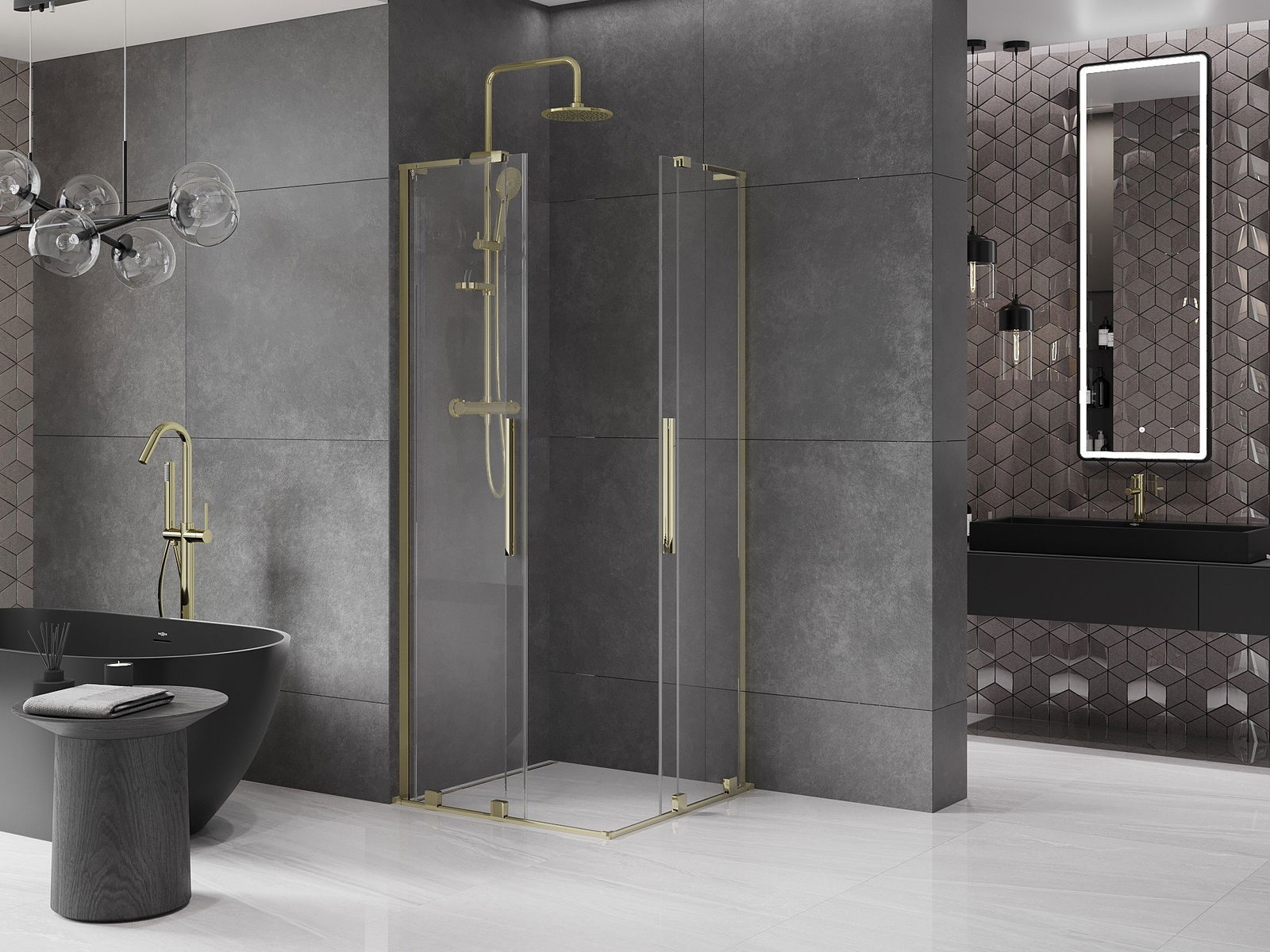 Mexen Velar L Duo kabina prysznicowa rozsuwana 90 x 90 cm, transparent, złota - 871-090-090-02-03-50
