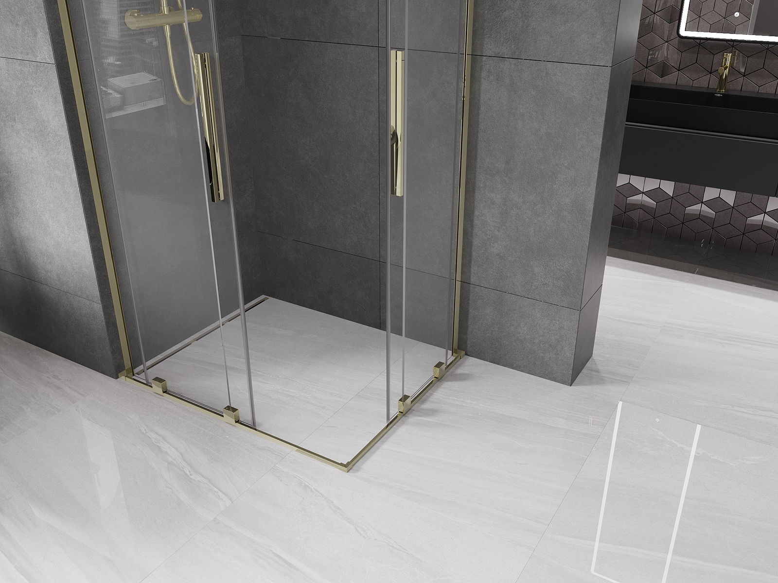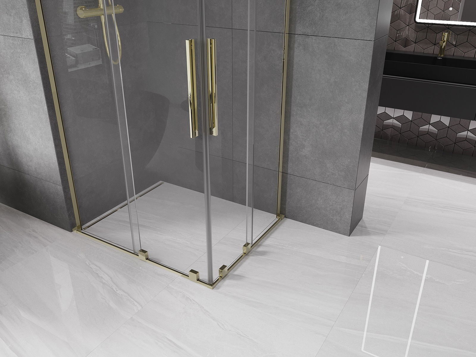 Mexen Velar L Duo kabina prysznicowa rozsuwana 100 x 90 cm, transparent, złota - 871-100-090-02-03-50