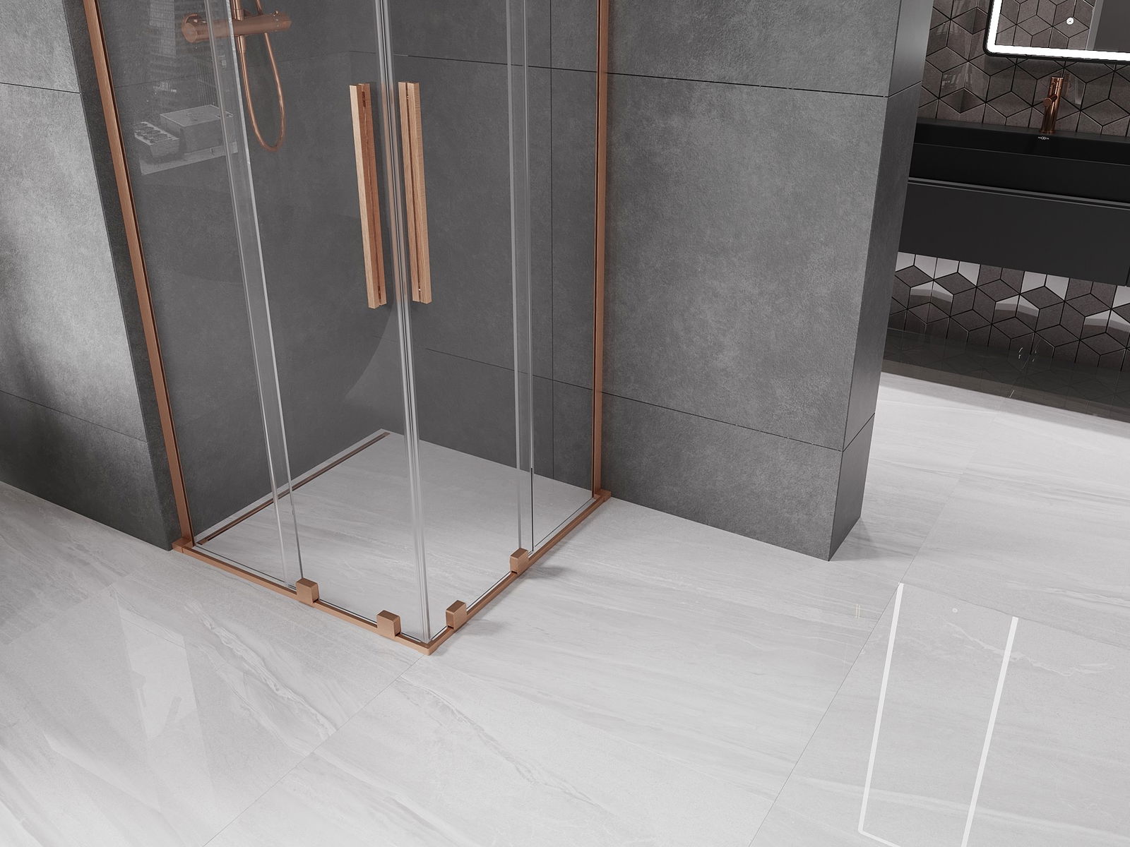 Mexen Velar L Duo kabina prysznicowa rozsuwana 100 x 100 cm, transparent, miedź szczotkowana - 871-100-100-02-03-65