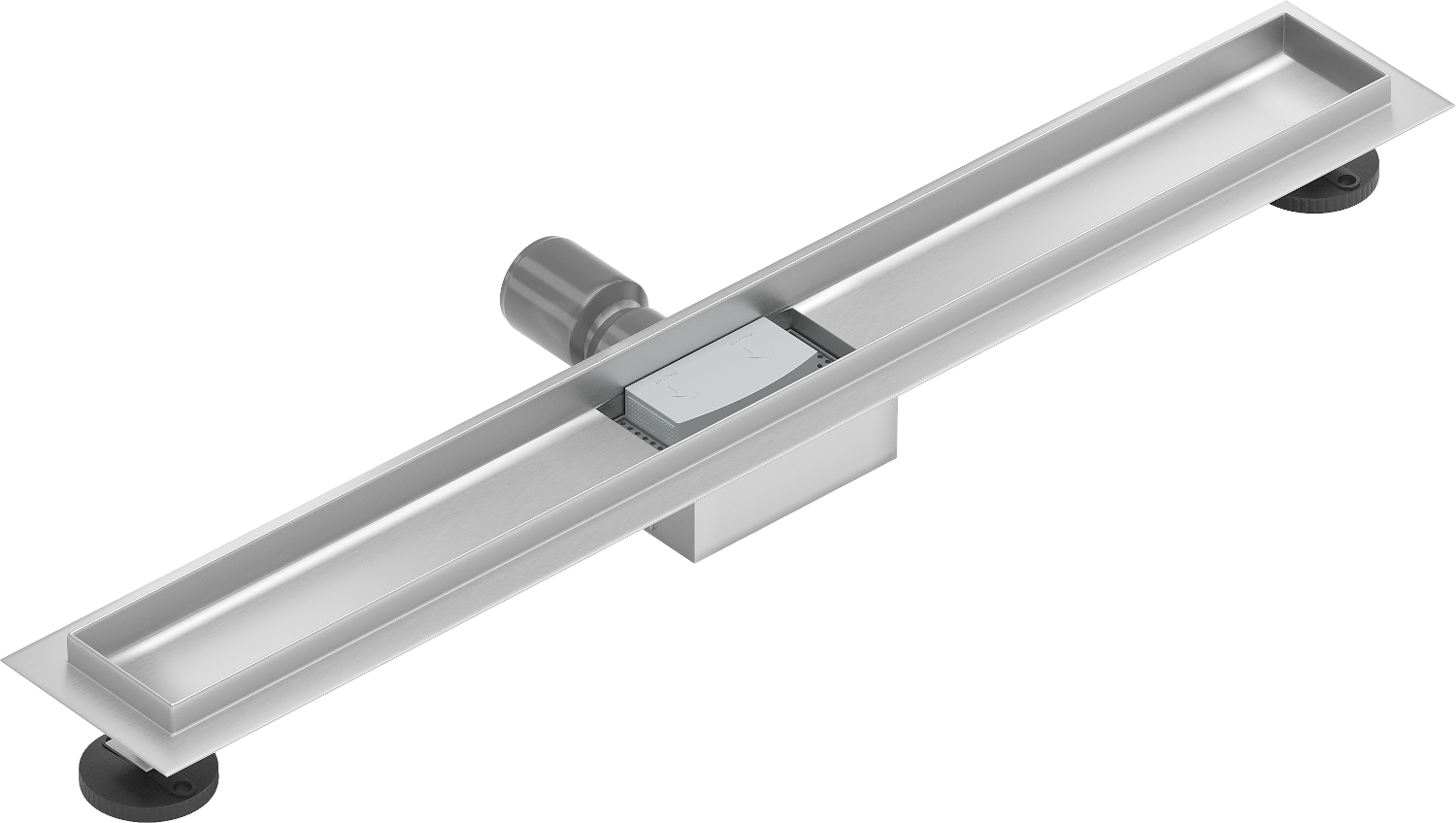 Odpływ jest wyposażony w regulowane nóżki, które umożliwiają dopasowanie odpowiedniej wysokości odpływu oraz wypoziomowanie na nierównej powierzchni. W ten sposób odpływ jest jeszcze lepiej dopasowany do warunków danej łazienki.