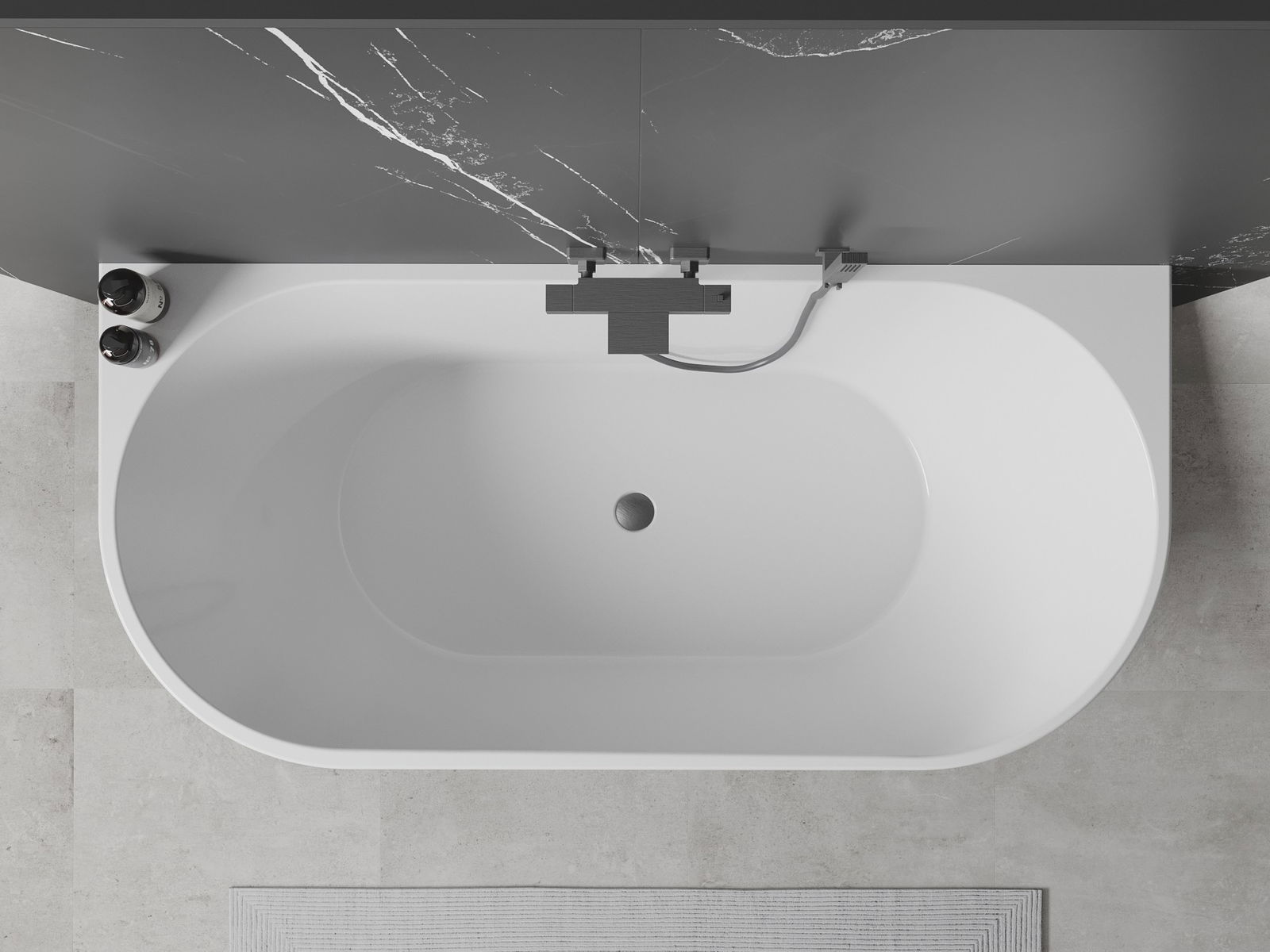 Mexen Oval wanna wolnostojąca przyścienna 140 x 75 cm, biała, przelew gun gray szczotkowany - 52671407500-66