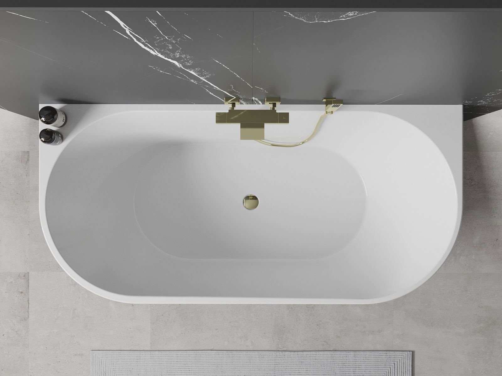 Mexen Oval wanna wolnostojąca przyścienna 150 x 75 cm, biała, przelew złoty - 52671507500-50