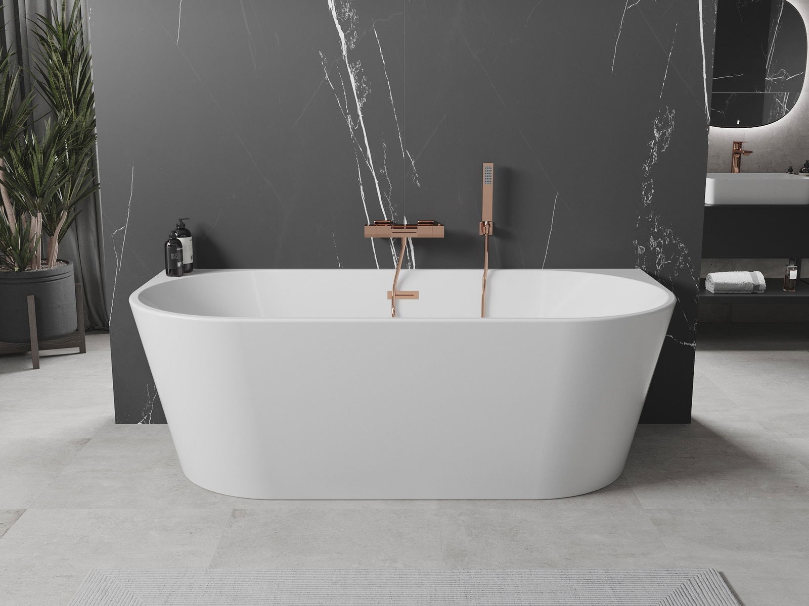 Mexen Oval wanna wolnostojąca przyścienna 150 x 75 cm, biała, przelew różowe złoto - 52671507500-60
