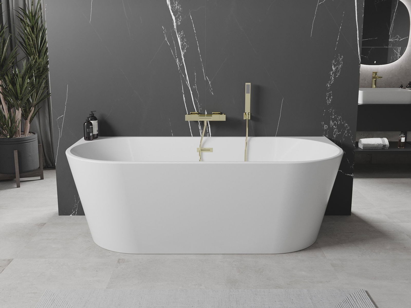 Mexen Oval wanna wolnostojąca przyścienna 160 x 80 cm, biała, przelew złoty szczotkowany - 52671608000-55