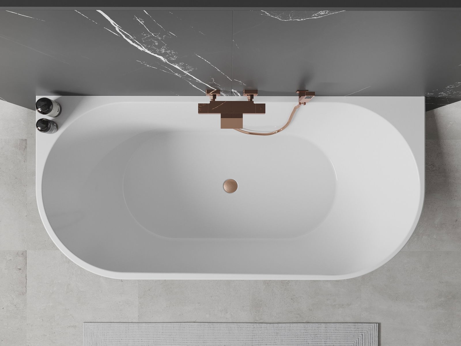Mexen Oval wanna wolnostojąca przyścienna 160 x 80 cm, biała, przelew miedź szczotkowana - 52671608000-65