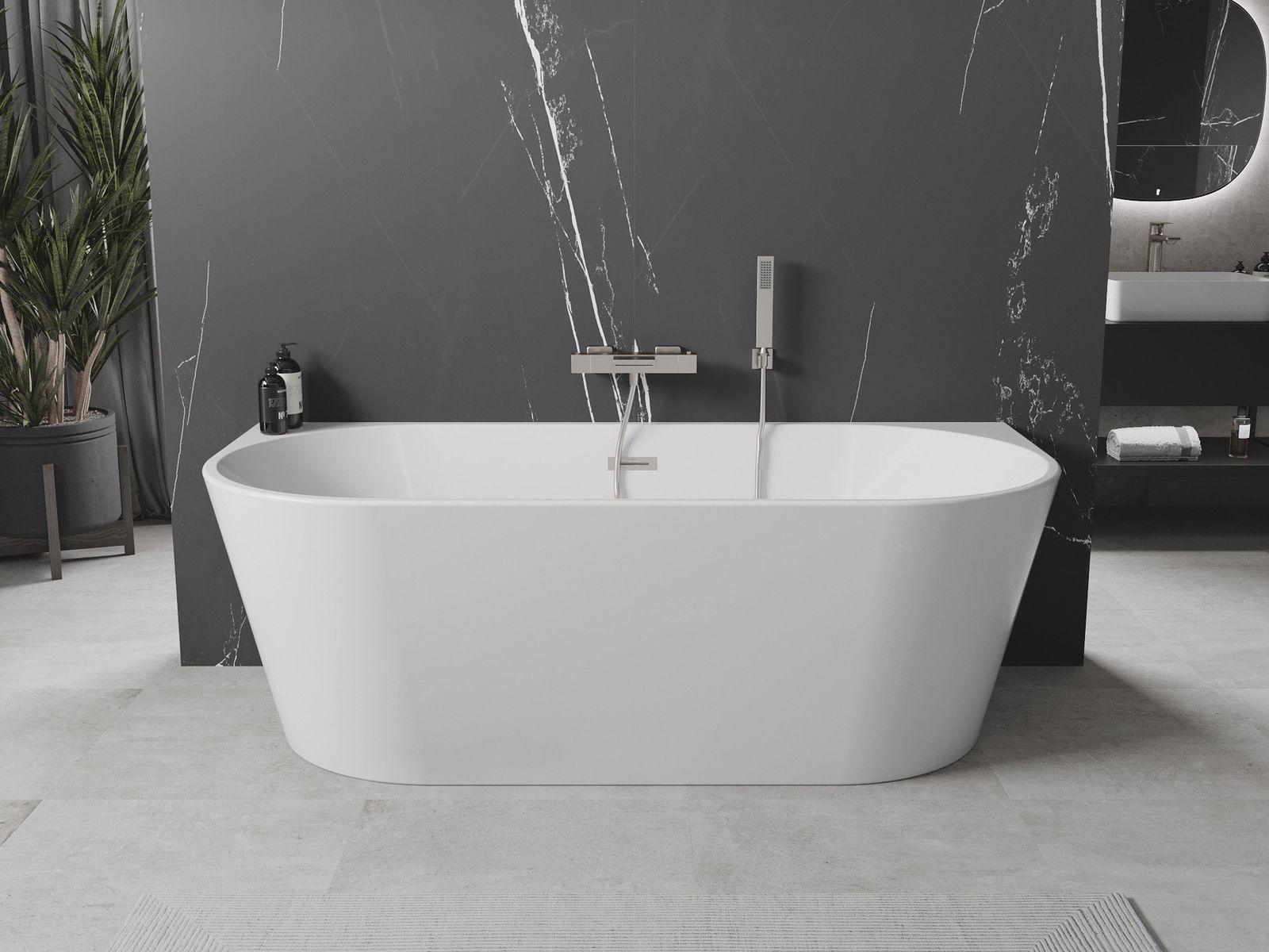 Mexen Oval wanna wolnostojąca przyścienna 160 x 80 cm, biała, przelew nikiel szczotkowany - 52671608000-97