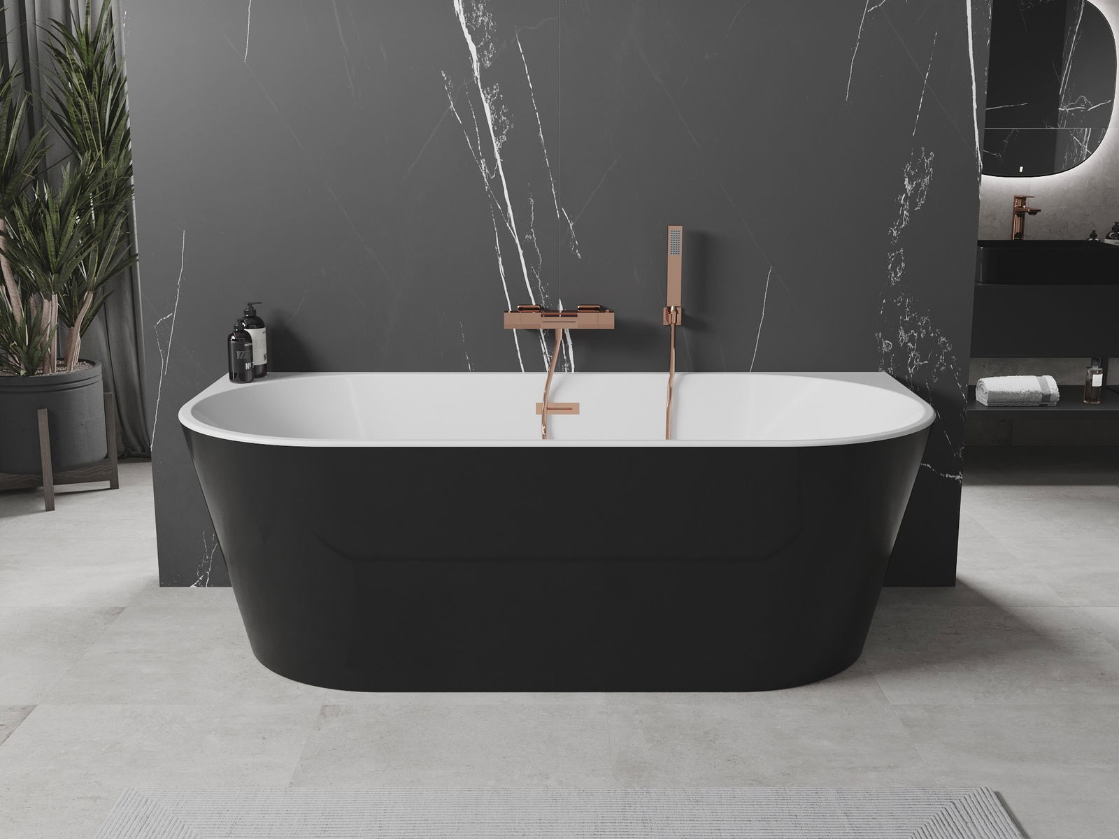 Mexen Oval wanna wolnostojąca przyścienna 160 x 80 cm, biała/czarna, przelew różowe złoto - 52671608075-60
