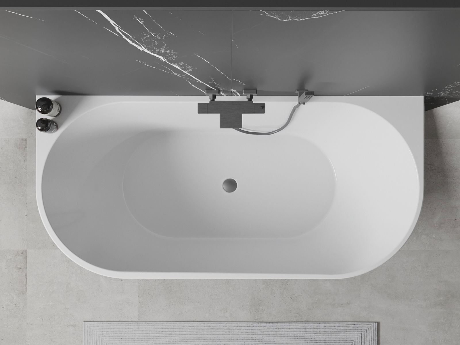 Mexen Oval wanna wolnostojąca przyścienna 160 x 80 cm, biała/czarna, przelew gun metal - 52671608075-95