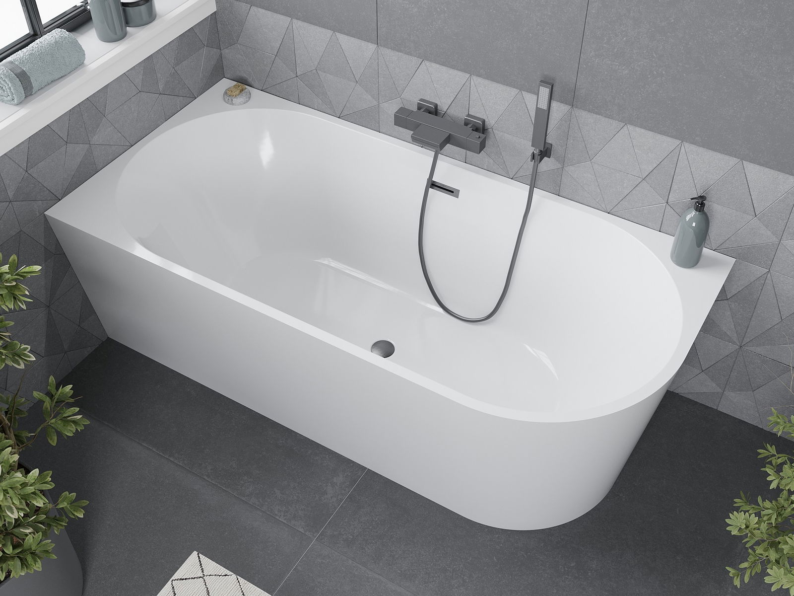 Mexen Mia wanna wolnostojąca narożna lewa 150 x 75 cm, biała, przelew gun gray szczotkowany - 52691507500L-66