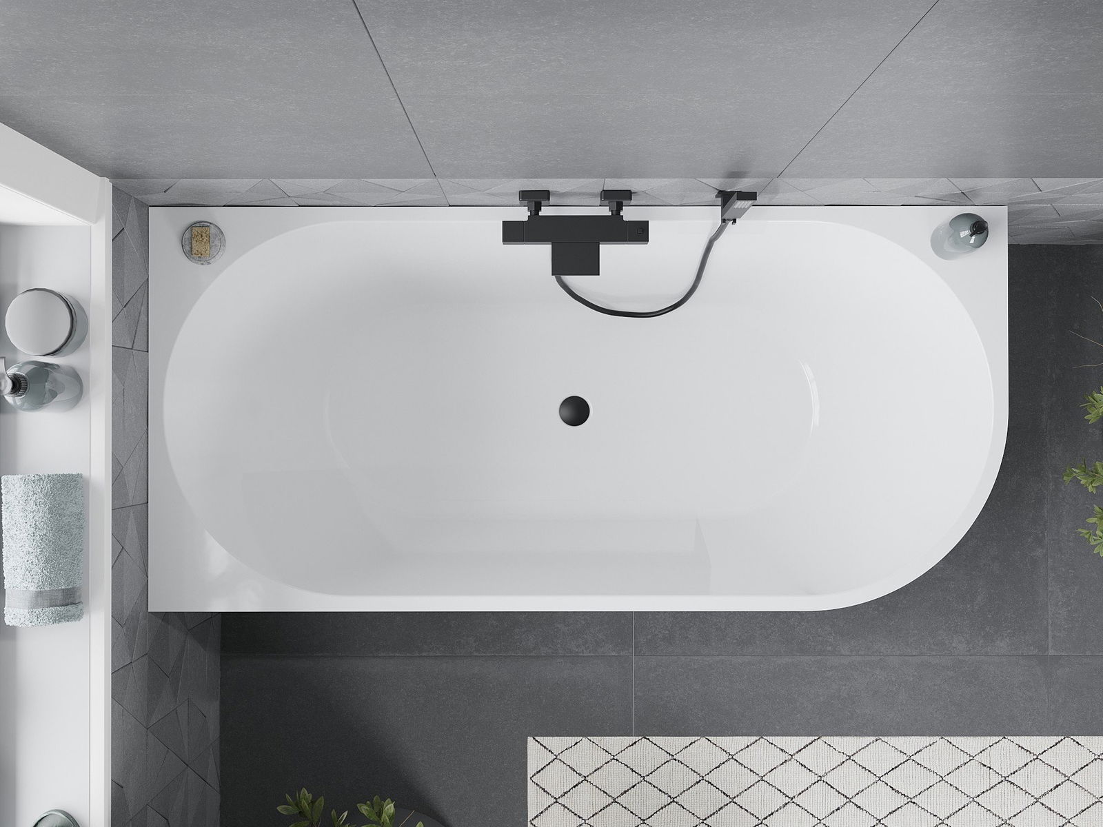Mexen Mia wanna wolnostojąca narożna lewa 150 x 75 cm, biała/czarna, przelew czarny - 52691507575L-70