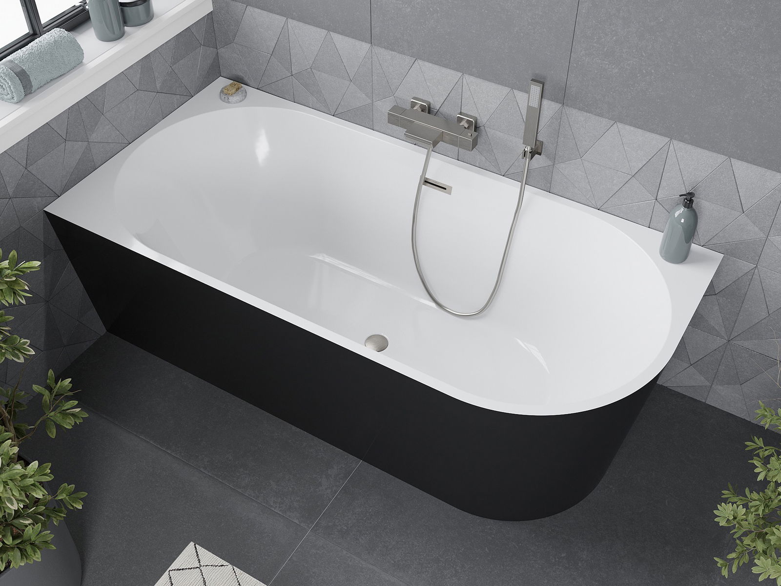 Mexen Mia wanna wolnostojąca narożna lewa 150 x 75 cm, biała/czarna, przelew nikiel szczotkowany - 52691507575L-97