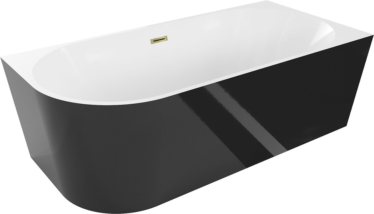 Mexen Mia wanna wolnostojąca narożna prawa 150 x 75 cm, biała/czarna, przelew złoty - 52691507575P-50