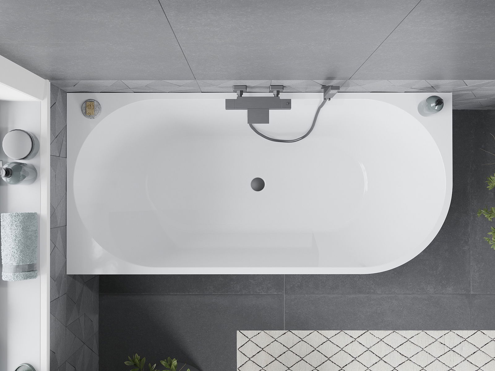 Mexen Mia wanna wolnostojąca narożna lewa 170 x 80 cm, biała/czarna, przelew gun metal - 52691708075L-95