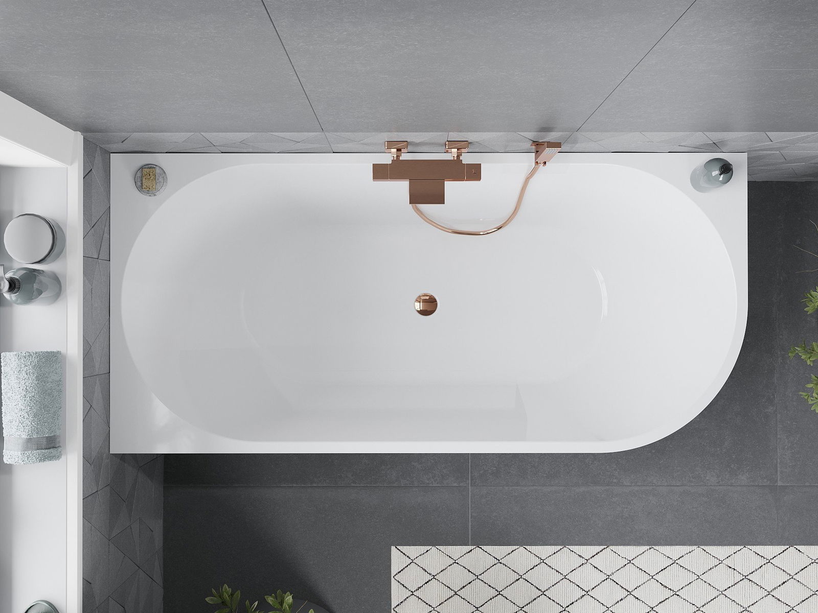 Mexen Mia wanna wolnostojąca narożna lewa 180 x 80 cm, biała, przelew różowe złoto - 52691808000L-60