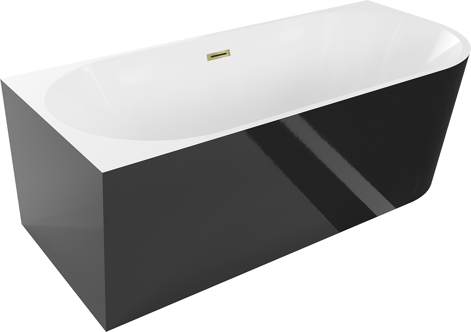 Mexen Mia wanna wolnostojąca narożna lewa 180 x 80 cm, biała/czarna, przelew złoty - 52691808075L-50