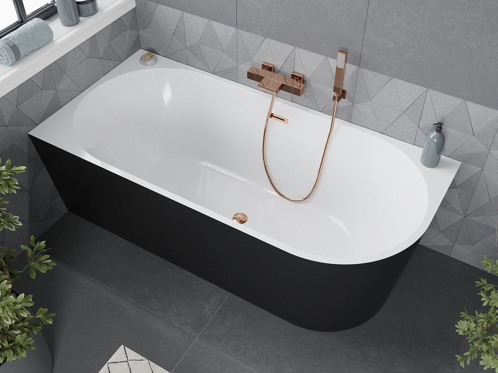 Mexen Mia wanna wolnostojąca narożna lewa 180 x 80 cm, biała/czarna, przelew różowe złoto - 52691808075L-60