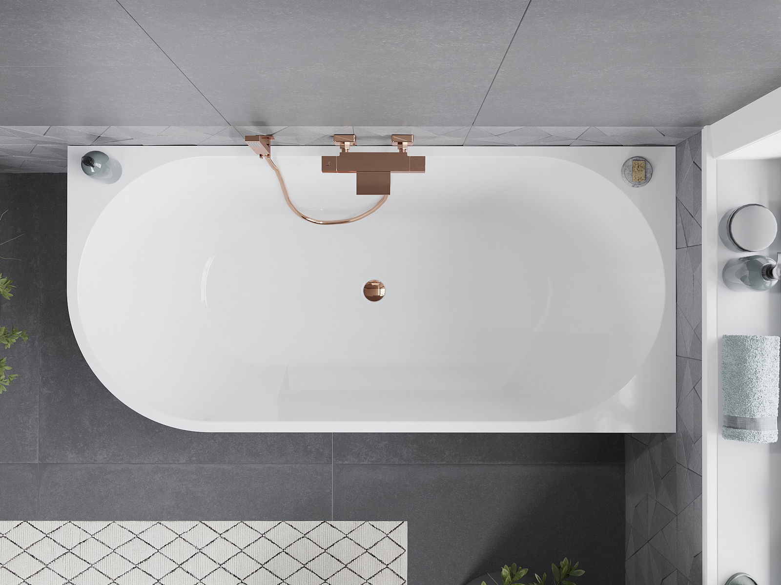Mexen Mia wanna wolnostojąca narożna prawa 180 x 80 cm, biała/czarna, przelew różowe złoto - 52691808075P-60