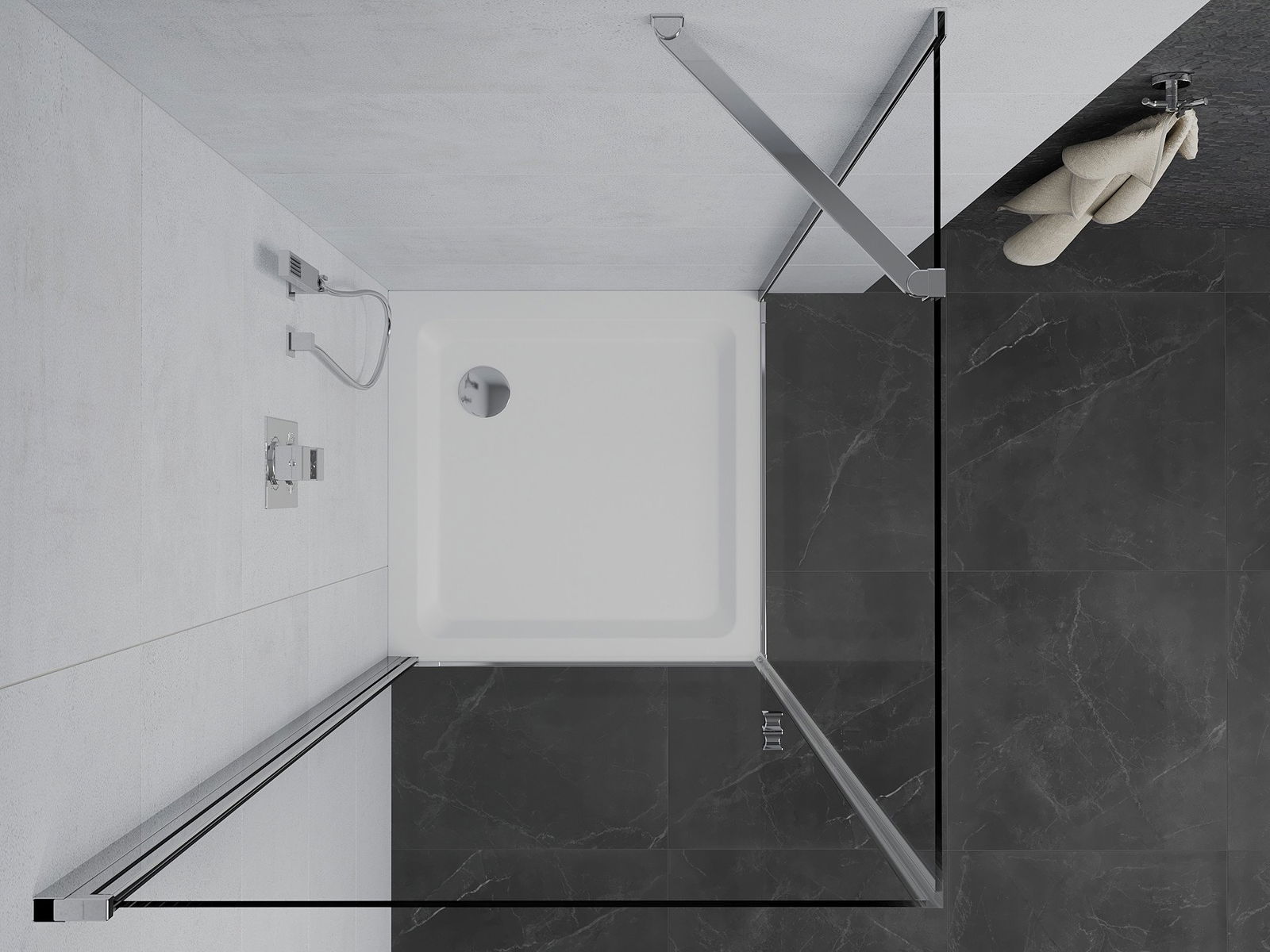 Rozmiar: 70x70 cm (drzwi 70 cm, ścianka 70 cm)