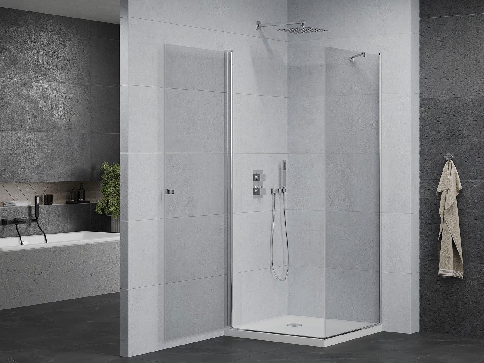 Dzięki zastosowaniu uniwersalnego systemu mocowania, drzwi prysznicowe mogą zostać zamontowane z prawej lub z lewej strony, zależnie od potrzeb. Dzięki temu możesz z łatwością zaprojektować prysznic dopasowany do przestrzeni łazienki.