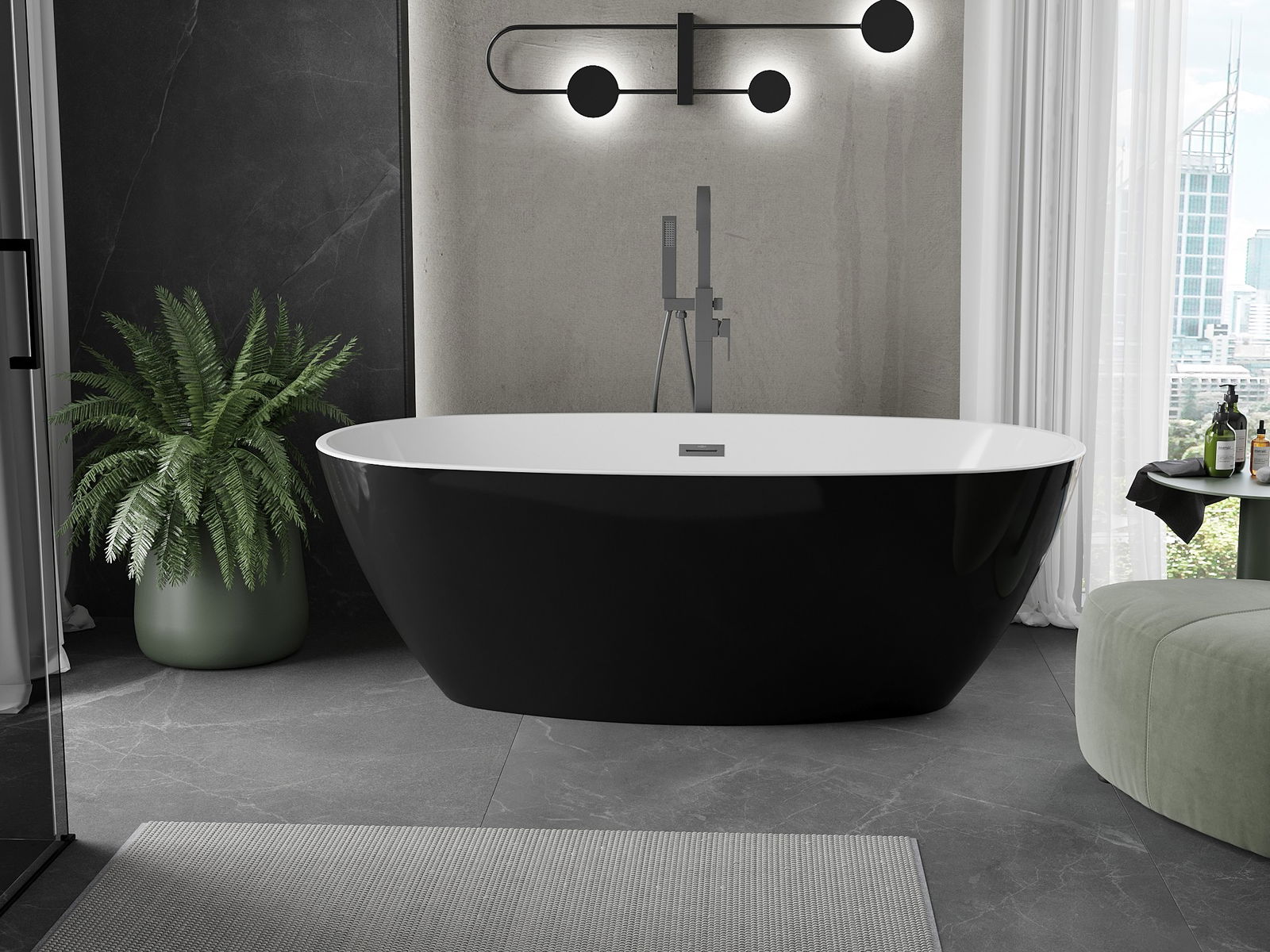 Mexen Eris wanna wolnostojąca 170 x 80 cm, biała/czarna, przelew gun metal - 53441708075-95