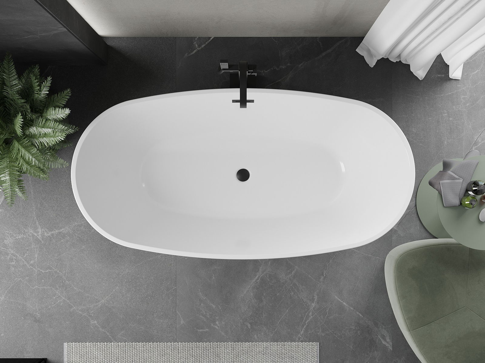 Mexen Eris wanna wolnostojąca 180 x 80 cm, biała, przelew czarny - 53441808000-70