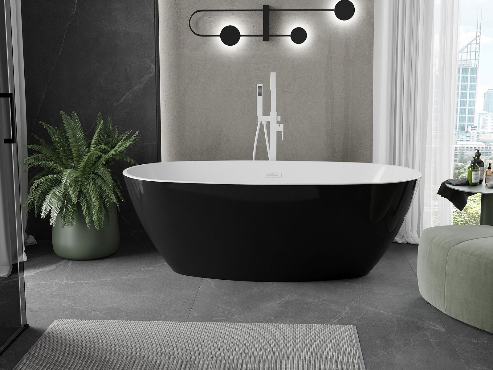 Mexen Eris wanna wolnostojąca 180 x 80 cm, biała/czarna, przelew biały - 53441808075-20