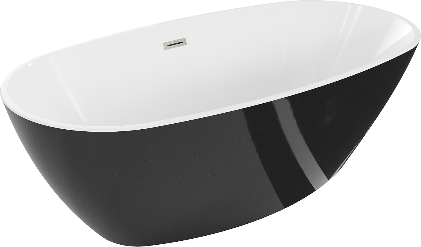 Mexen Eris wanna wolnostojąca 180 x 80 cm, biała/czarna, przelew nikiel szczotkowany - 53441808075-97