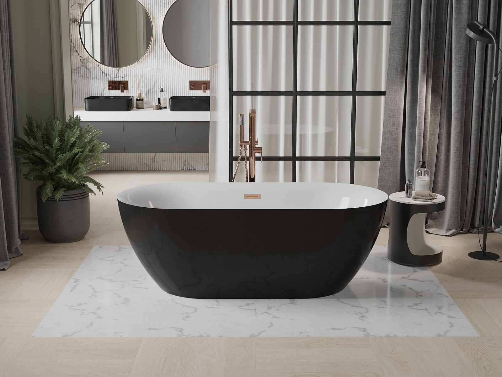 Mexen Roxy wanna wolnostojąca 170 x 80 cm, biała/czarna, przelew różowe złoto - 51201708075-60