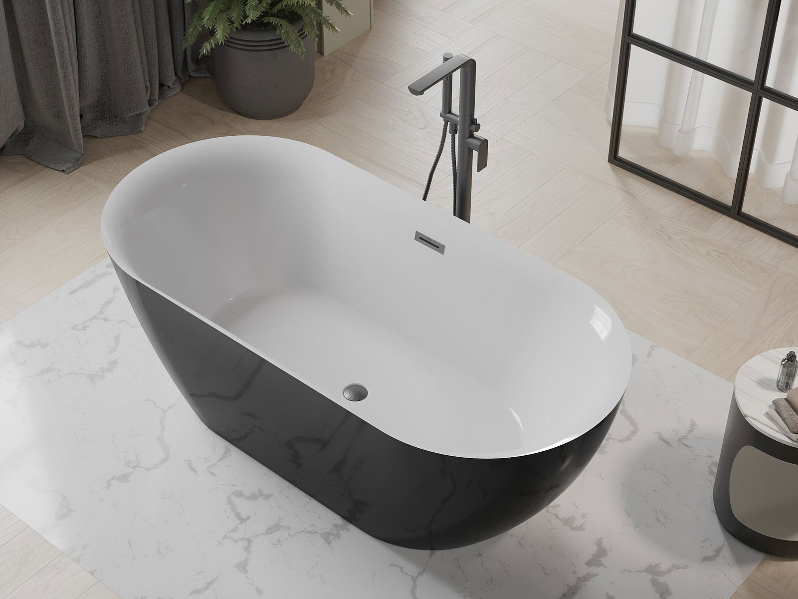 Mexen Roxy wanna wolnostojąca 170 x 80 cm, biała/czarna, przelew gun gray szczotkowany - 51201708075-66