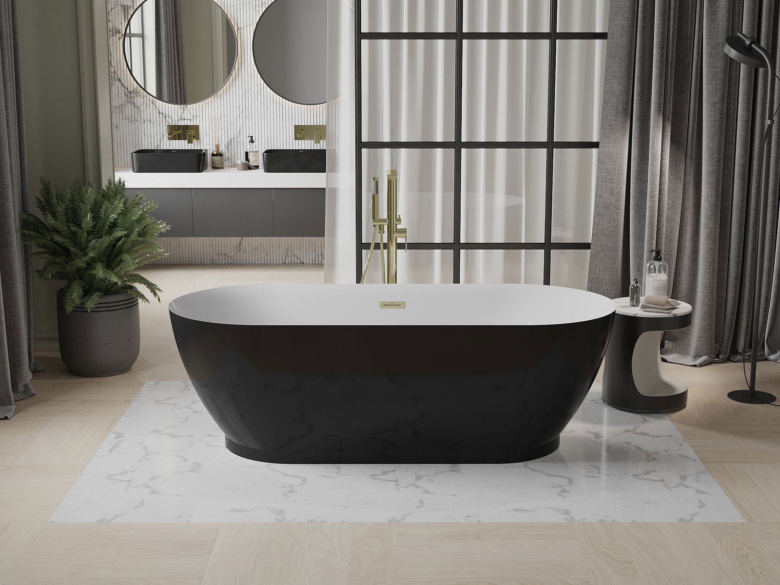 Mexen Roxy wanna wolnostojąca 180 x 85 cm, biała/czarna, przelew złoty szczotkowany - 51201808575-55