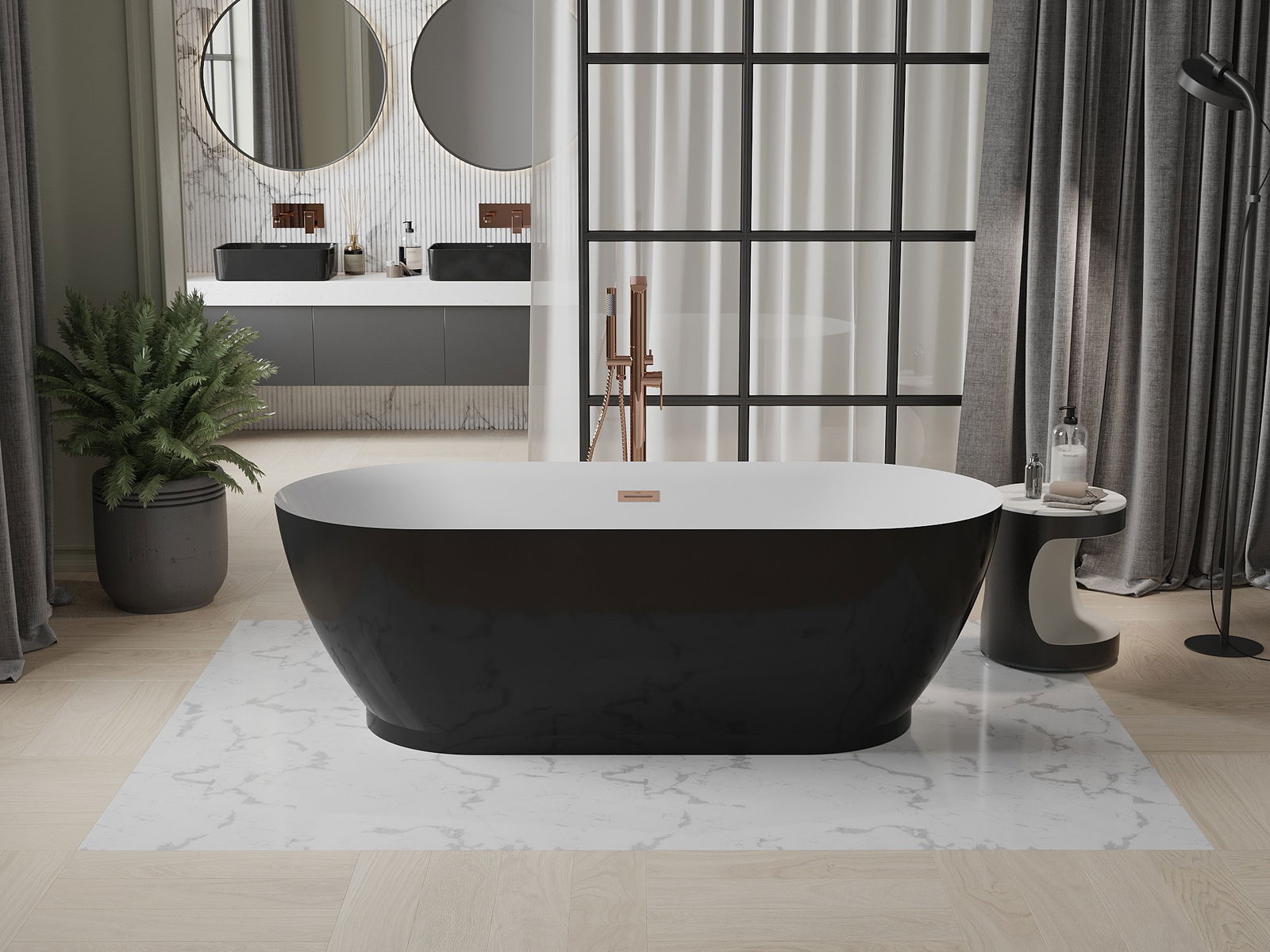 Mexen Roxy wanna wolnostojąca 180 x 85 cm, biała/czarna, przelew miedź szczotkowana - 51201808575-65