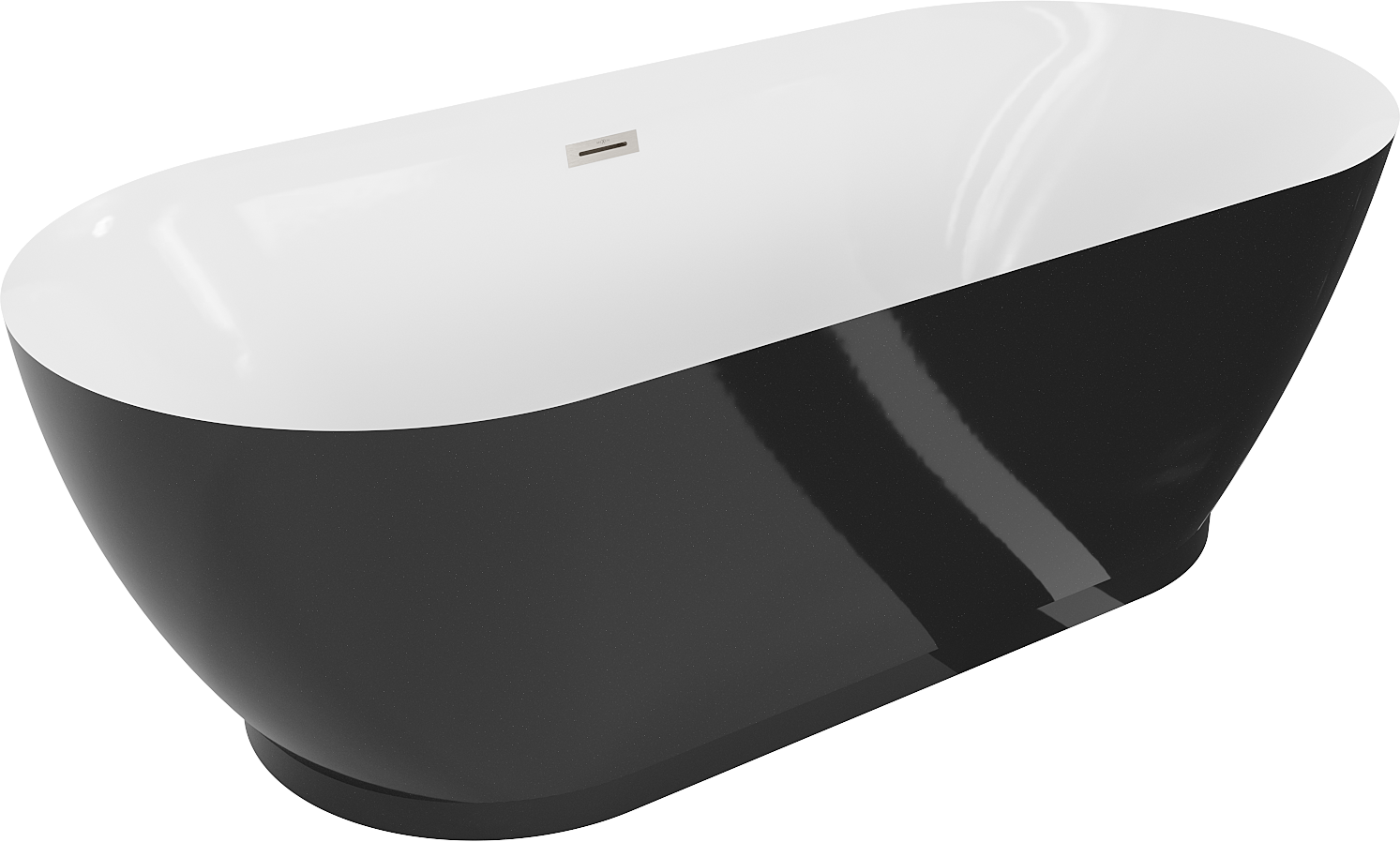 Mexen Roxy wanna wolnostojąca 180 x 85 cm, biała/czarna, przelew nikiel szczotkowany - 51201808575-97