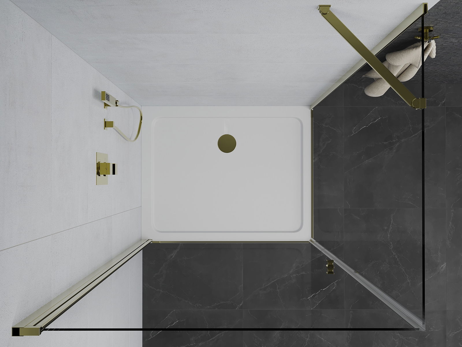 Mexen Pretoria kabina prysznicowa uchylna 70 x 80 cm, transparent, złota + brodzik Flat - 852-070-080-50-00-4010