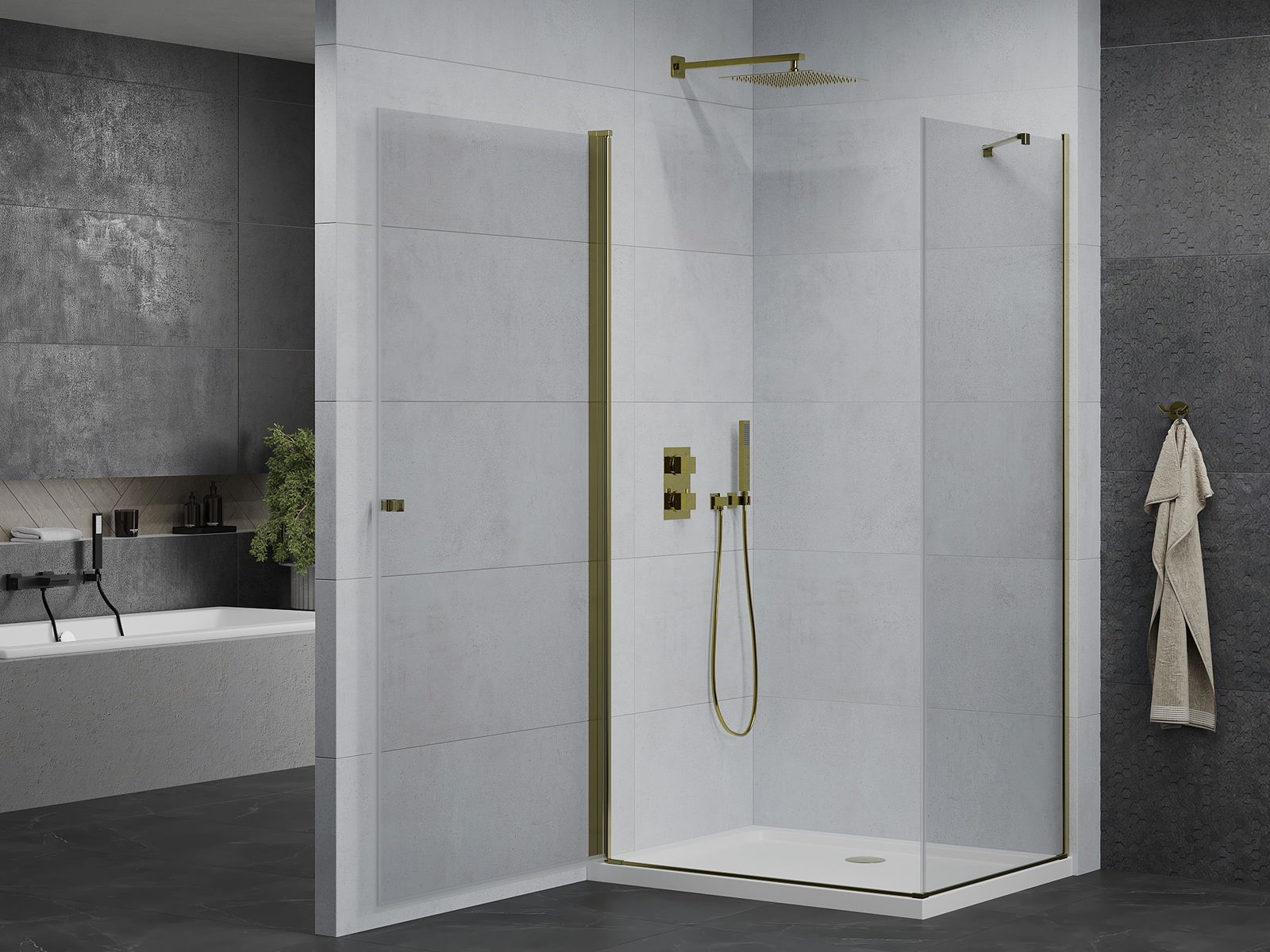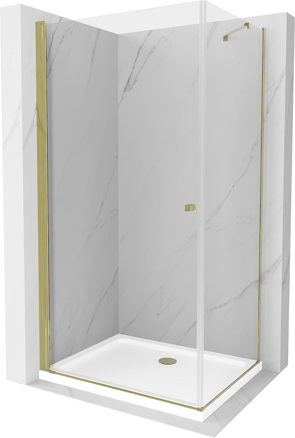 Mexen Pretoria kabina prysznicowa uchylna 90 x 80 cm, transparent, złota + brodzik Flat - 852-090-080-50-00-4010