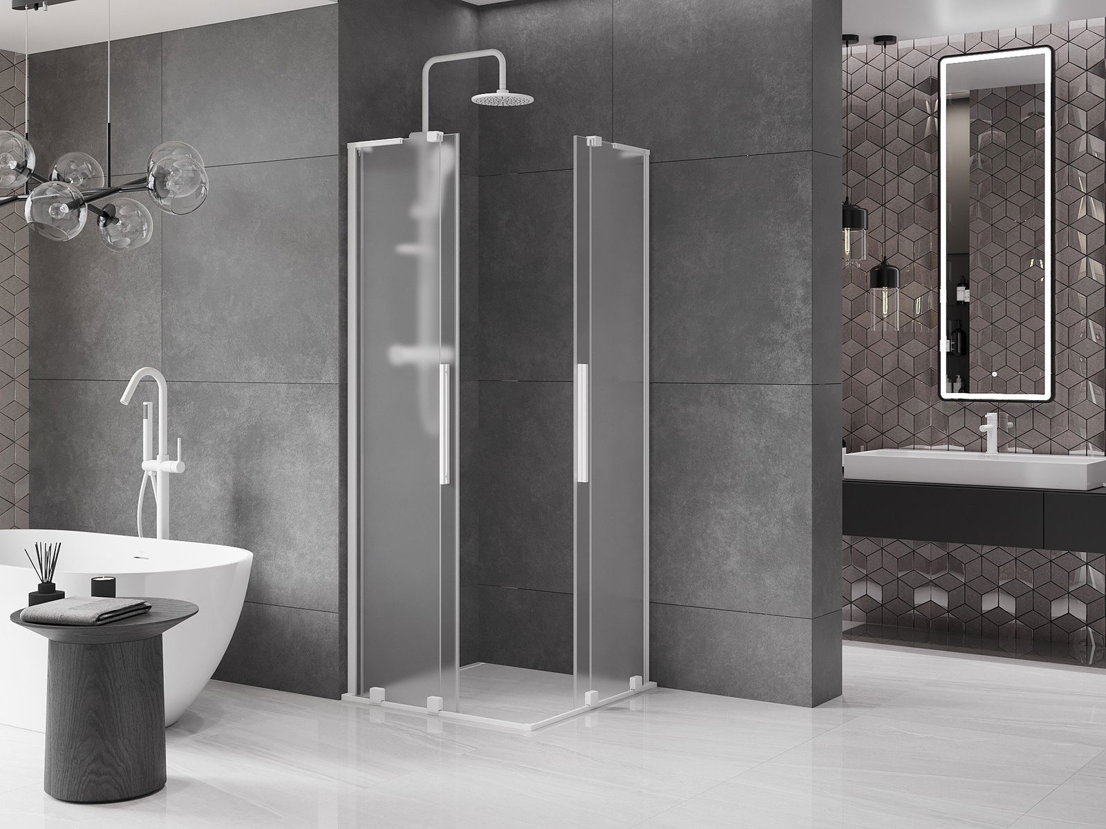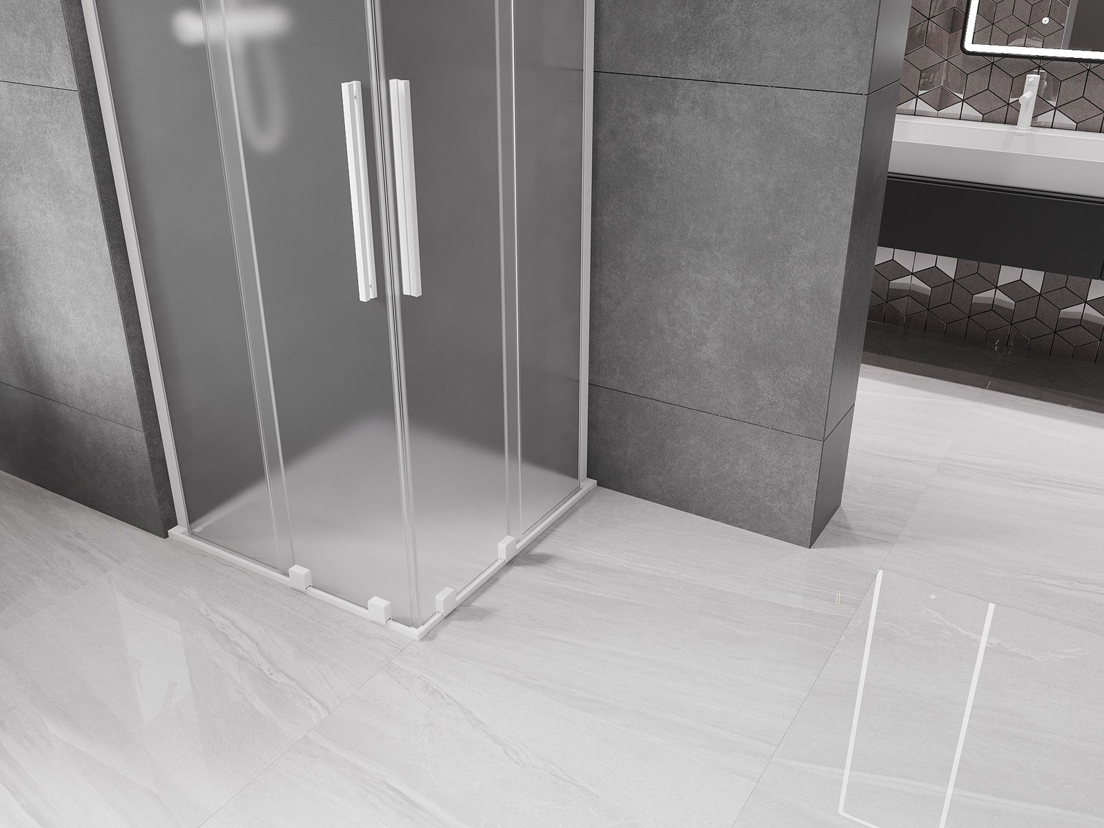 Mexen Velar L Duo kabina prysznicowa rozsuwana 80 x 80 cm, szron, biała - 871-080-080-02-33-20