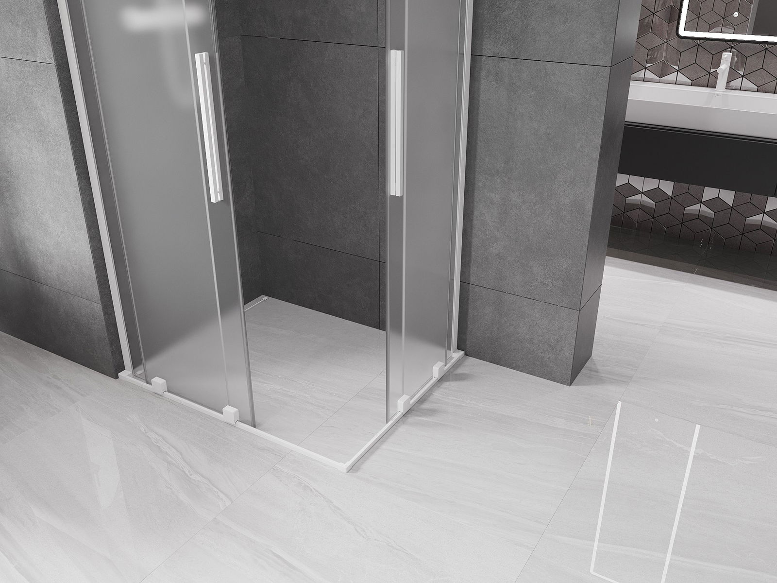 Mexen Velar L Duo kabina prysznicowa rozsuwana 90 x 80 cm, szron, biała - 871-090-080-02-33-20