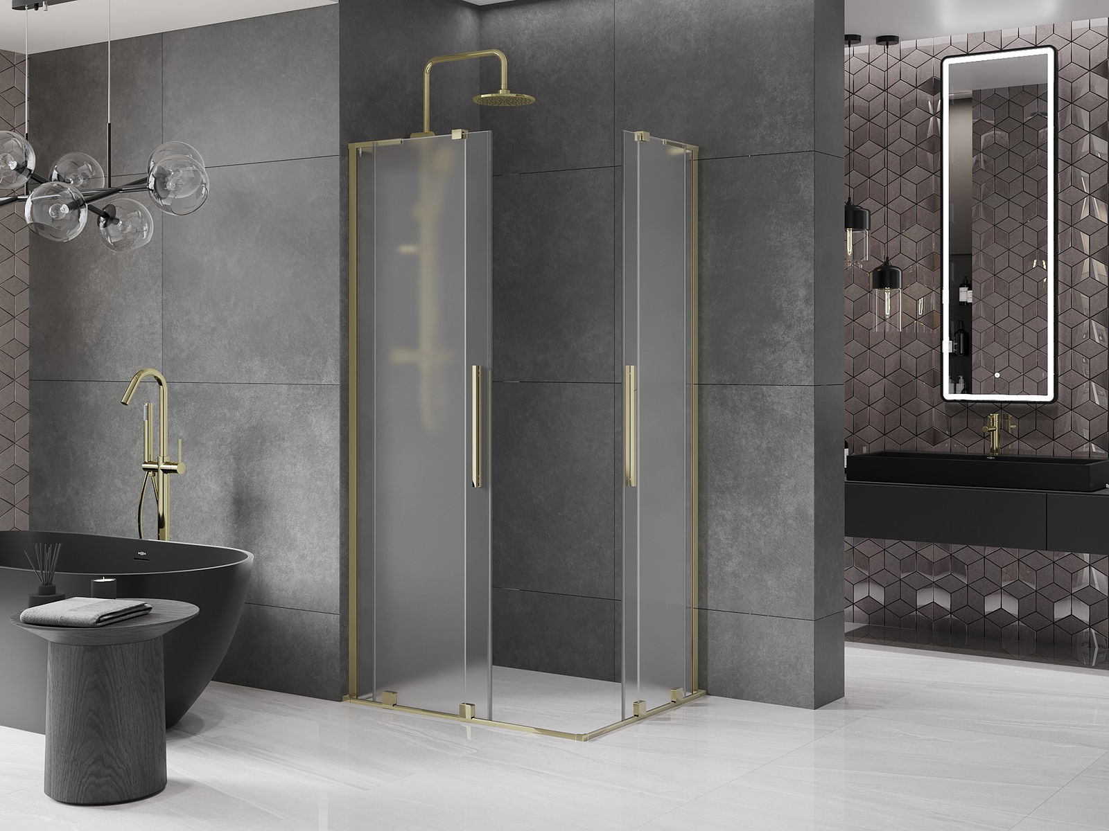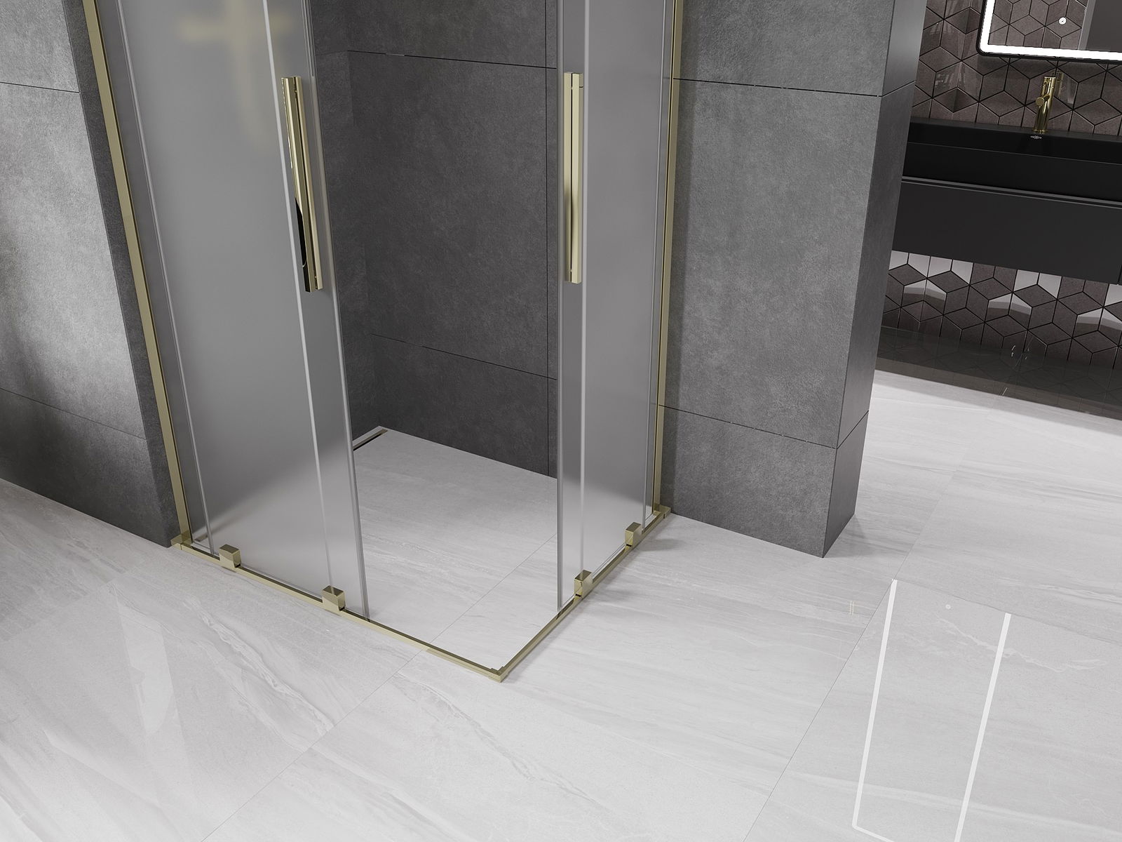 Mexen Velar L Duo kabina prysznicowa rozsuwana 90 x 80 cm, szron, złota - 871-090-080-02-33-50