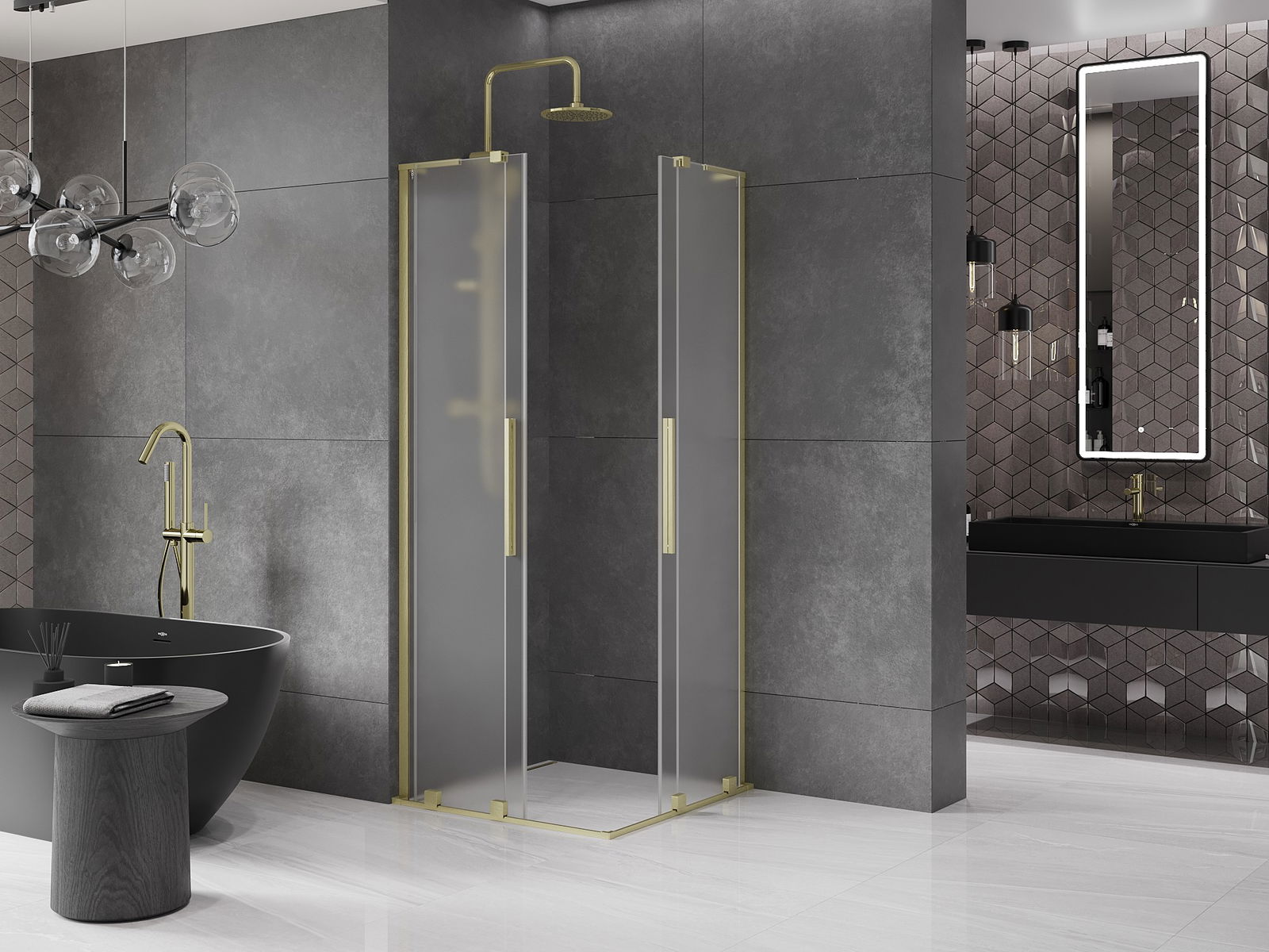 Mexen Velar L Duo kabina prysznicowa rozsuwana 90 x 90 cm, szron, złota szczotkowana - 871-090-090-02-33-55