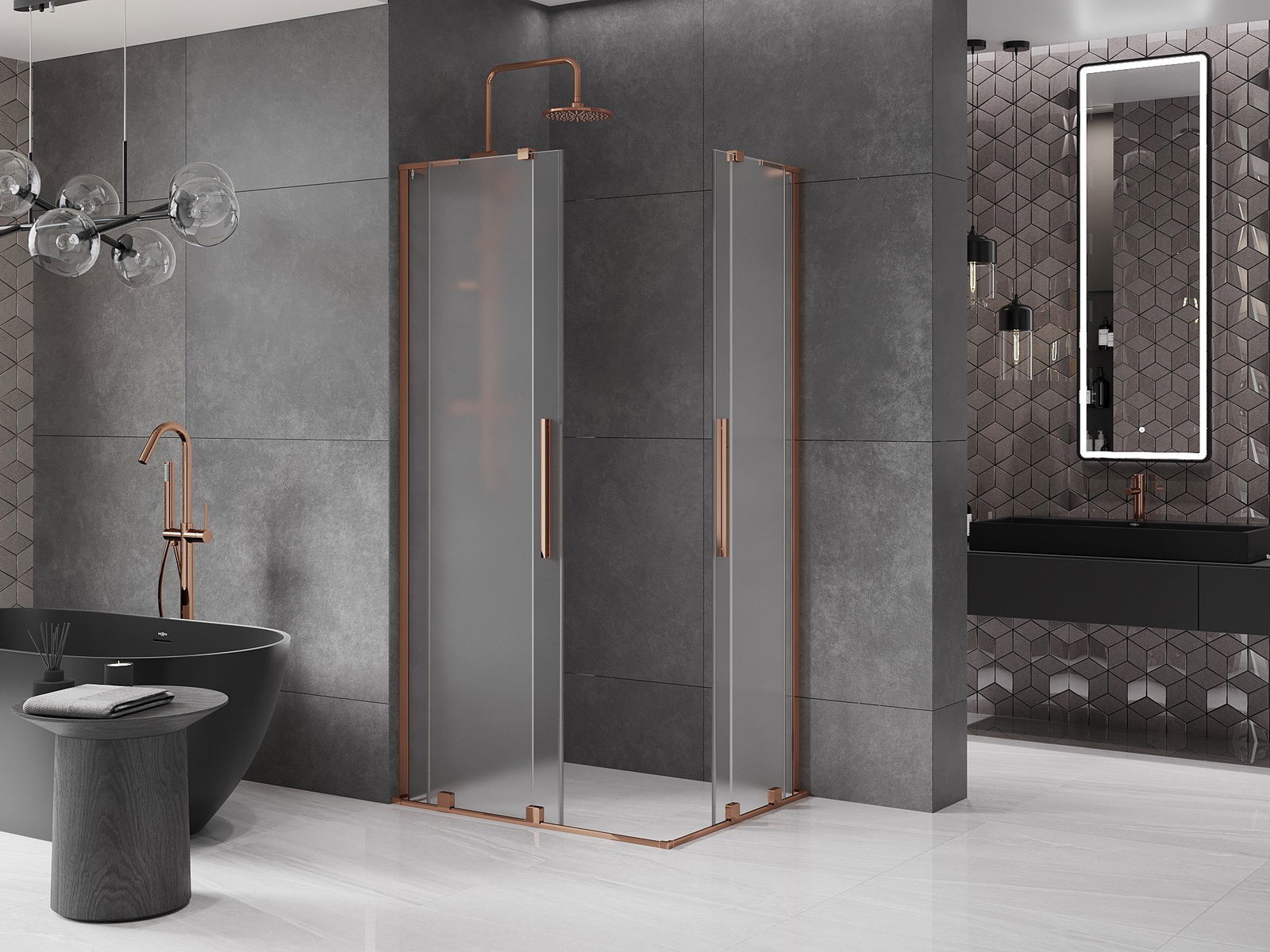 Mexen Velar L Duo kabina prysznicowa rozsuwana 90 x 80 cm, szron, różowe złoto - 871-090-080-02-33-60