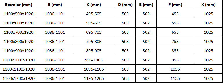 Rozmiar: 110x80 cm (drzwi 110 cm, ścianka 80 cm)