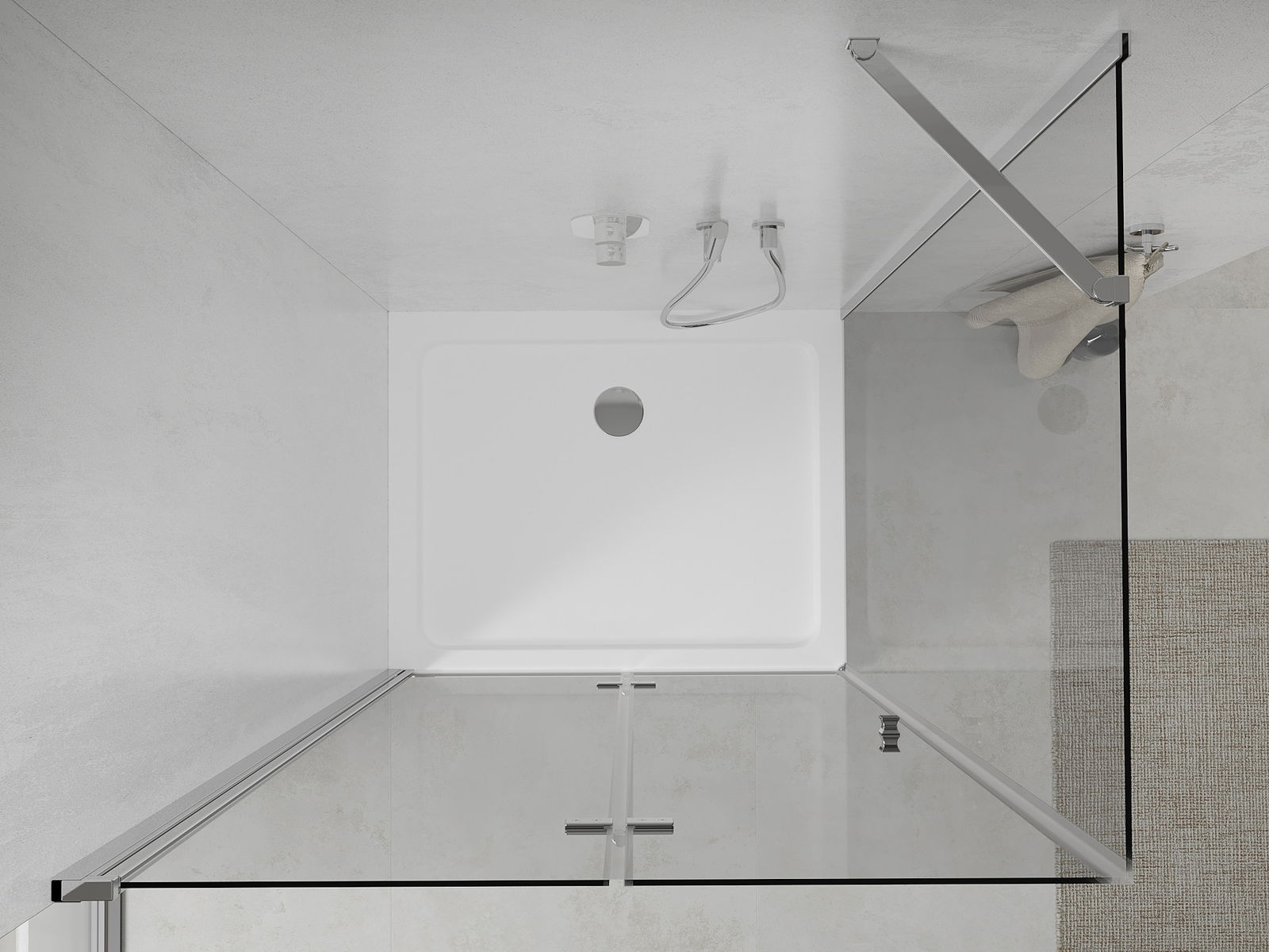 Możliwość składania drzwi, zarówno do zewnątrz, jak i do wewnątrz, pozwala uzyskać więcej przestrzeni podczas niekorzystania z prysznica. Jest to idealne rozwiązanie do mniejszych łazienek, maksymalnie wykorzystujące dostępną powierzchnię.