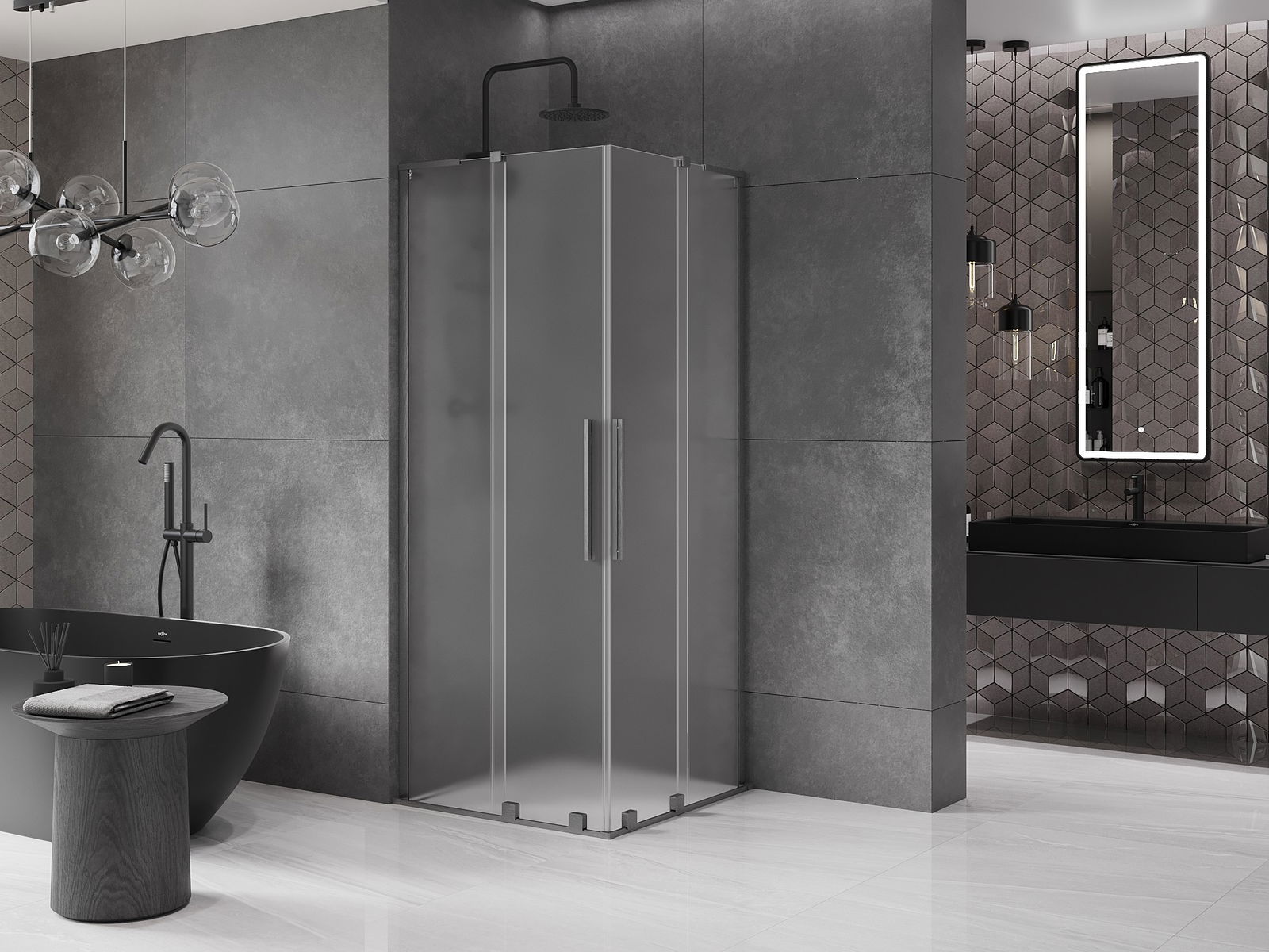Mexen Velar L Duo kabina prysznicowa rozsuwana 80 x 80 cm, szron, gun gray szczotkowany - 871-080-080-02-33-66