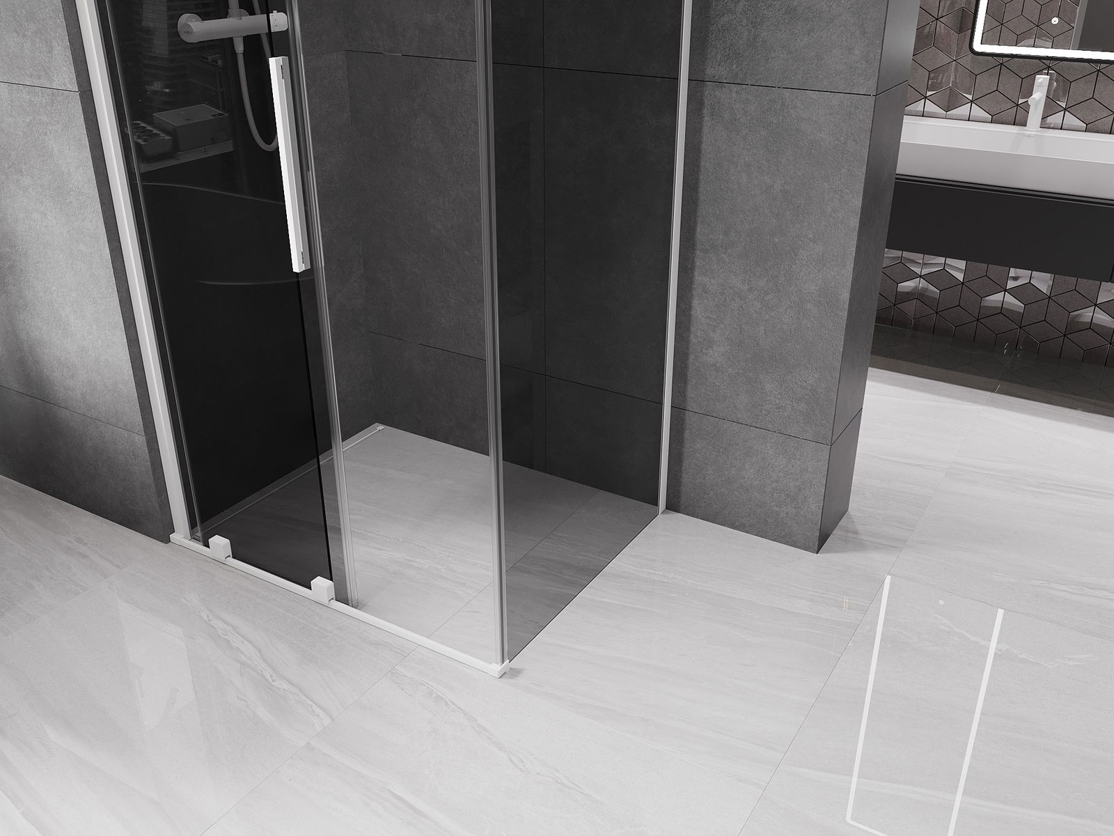 Dzięki zastosowaniu uniwersalnego systemu mocowania, drzwi prysznicowe mogą zostać zamontowane z prawej lub z lewej strony, zależnie od potrzeb. Dzięki temu możesz z łatwością zaprojektować prysznic dopasowany do przestrzeni łazienki.