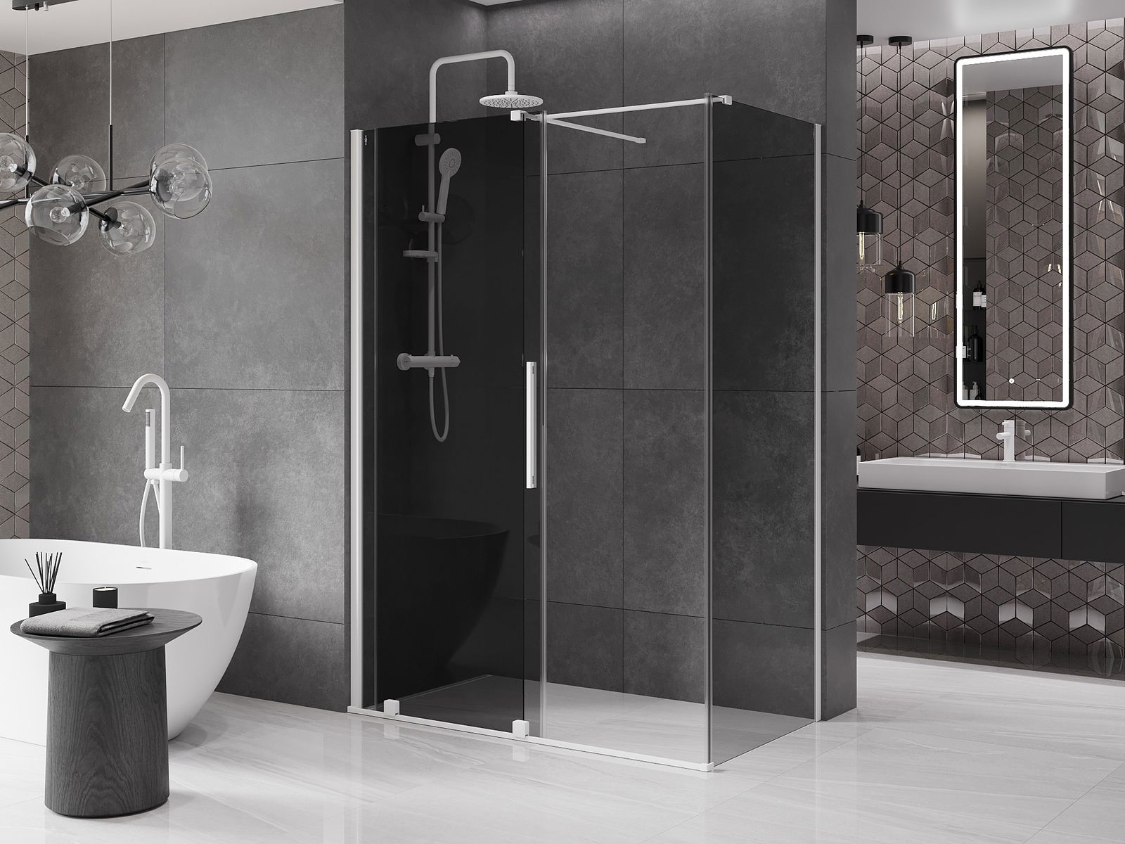Dzięki zastosowaniu uniwersalnego systemu mocowania, drzwi prysznicowe mogą zostać zamontowane z prawej lub z lewej strony, zależnie od potrzeb. Dzięki temu możesz z łatwością zaprojektować prysznic dopasowany do przestrzeni łazienki.