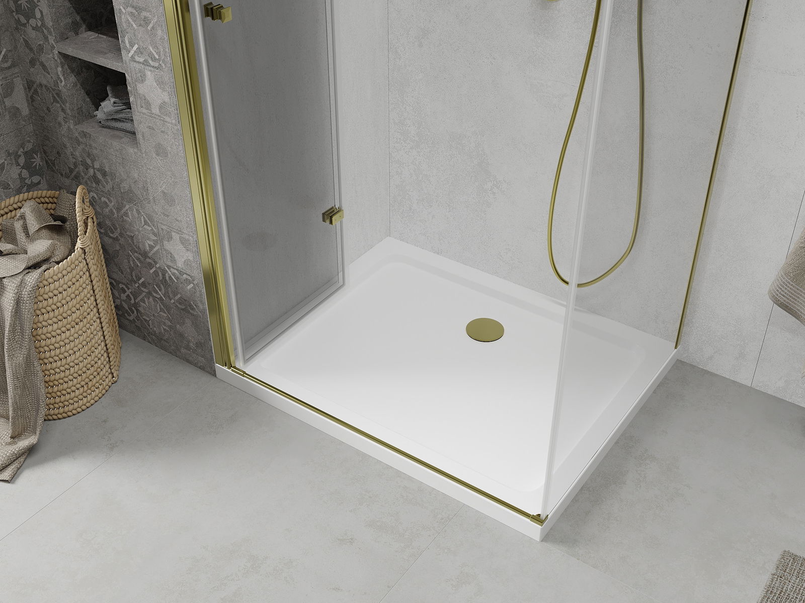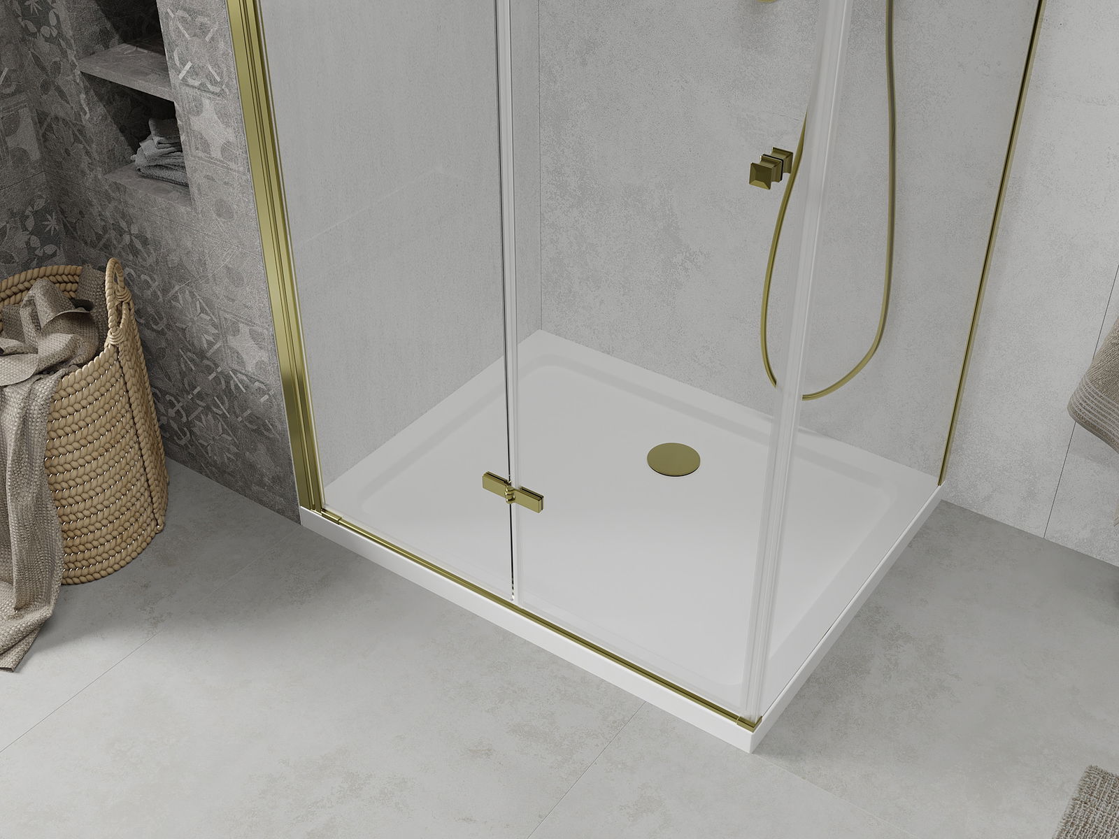 Mexen Lima kabina prysznicowa składana 90 x 80 cm, transparent, złota + brodzik Flat - 856-090-080-50-00-4010