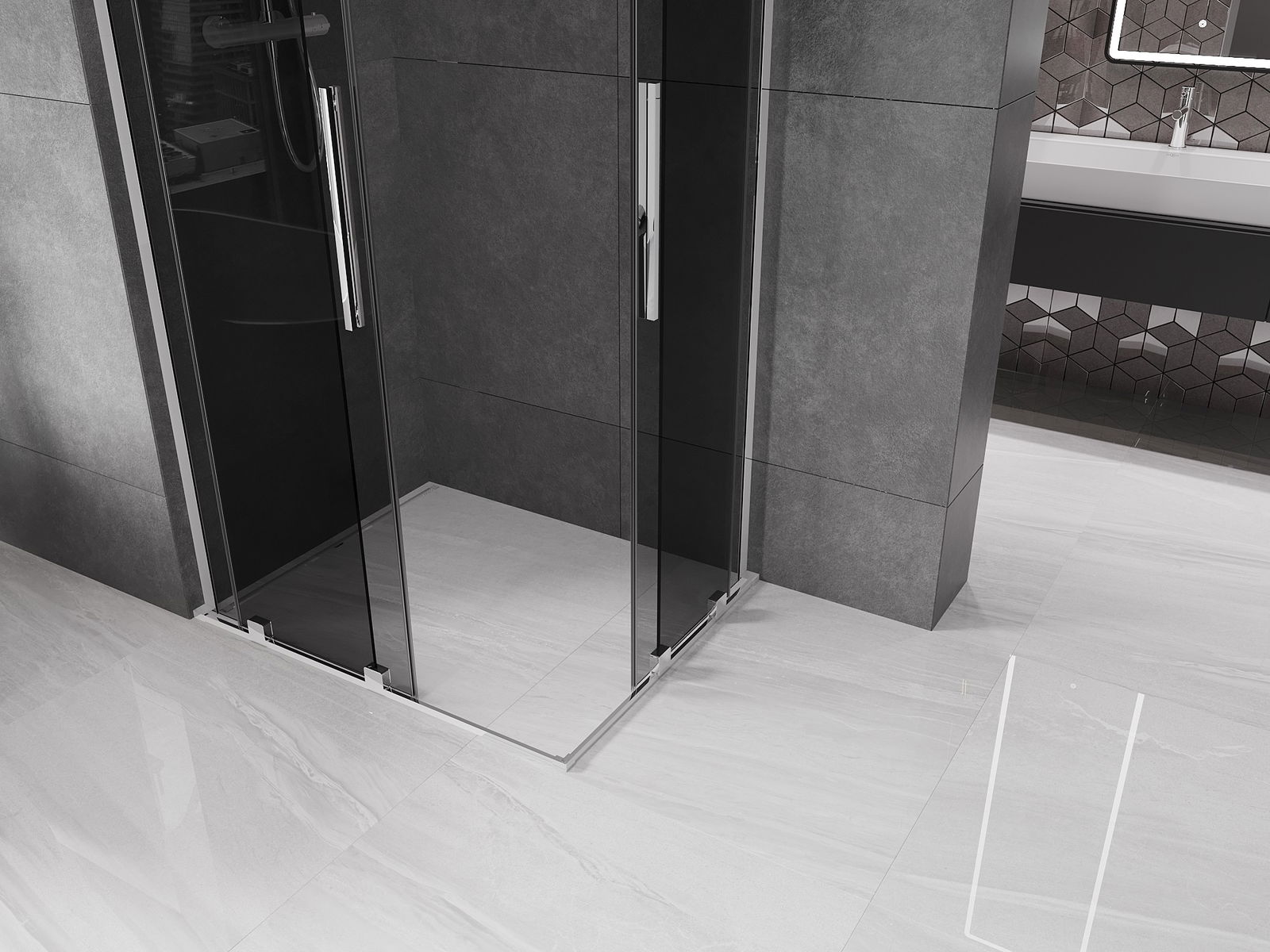 Dzięki zastosowaniu uniwersalnego systemu mocowania, drzwi prysznicowe mogą zostać zamontowane z prawej lub z lewej strony, zależnie od potrzeb. Dzięki temu możesz z łatwością zaprojektować prysznic dopasowany do przestrzeni łazienki.