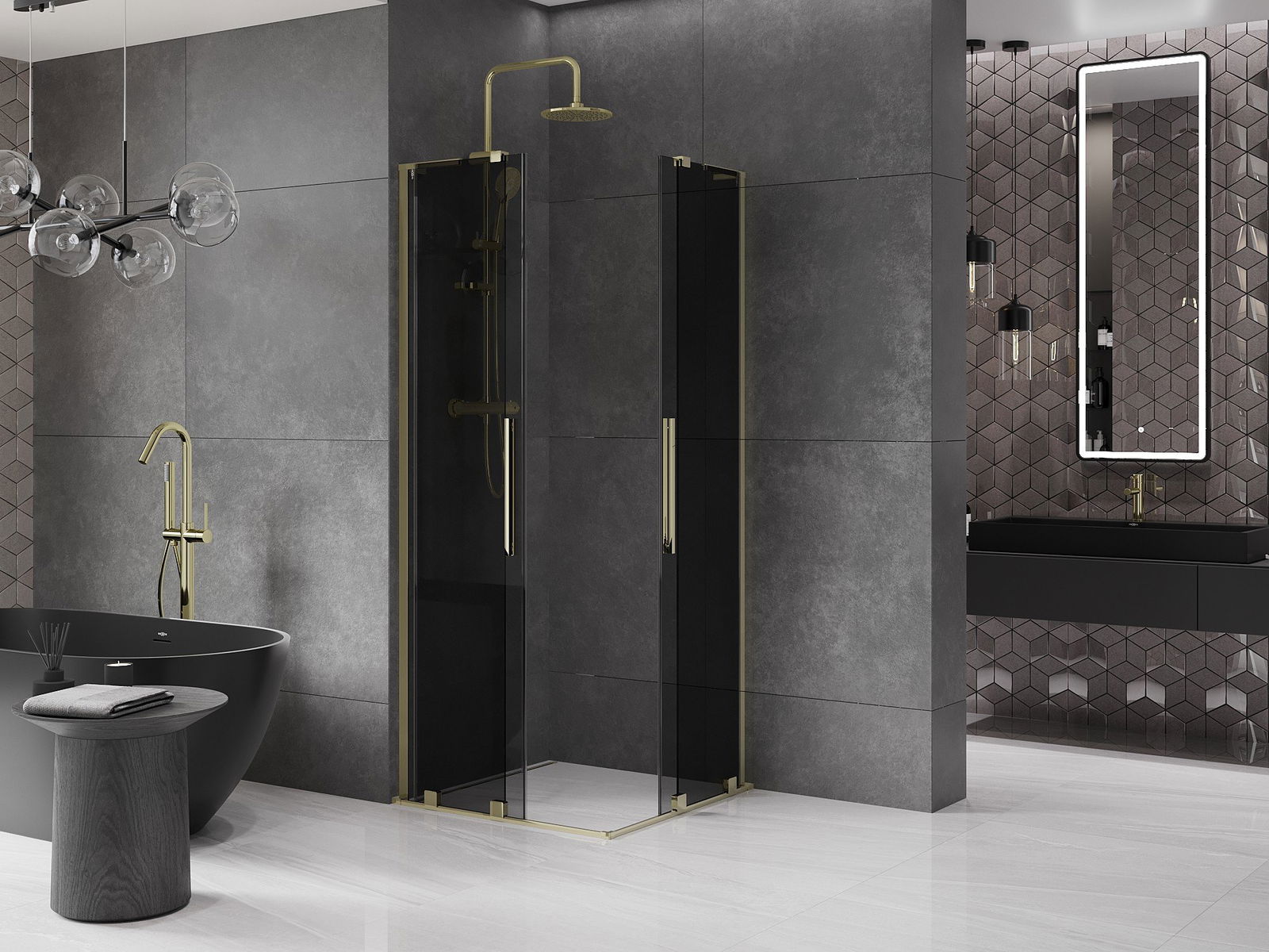 Mexen Velar L Duo kabina prysznicowa rozsuwana 80 x 80 cm, grafit, złota - 871-080-080-02-43-50